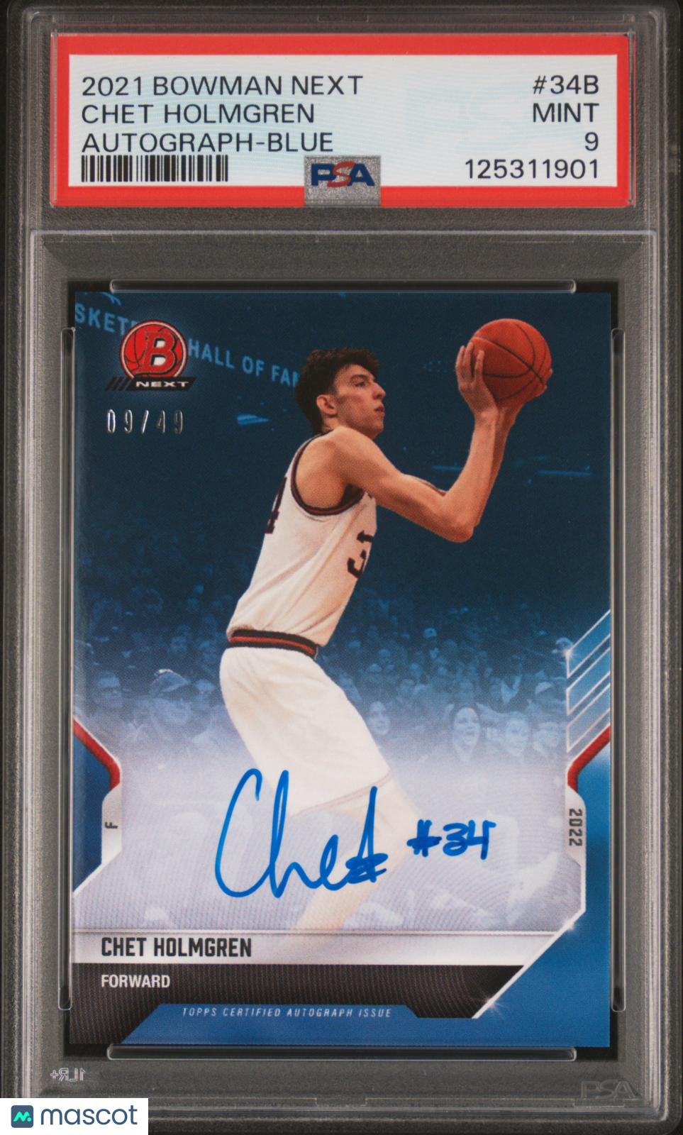 2021 Bowman Next Chet Holmgren #34B Autograph Blue 09/49 PSA 9