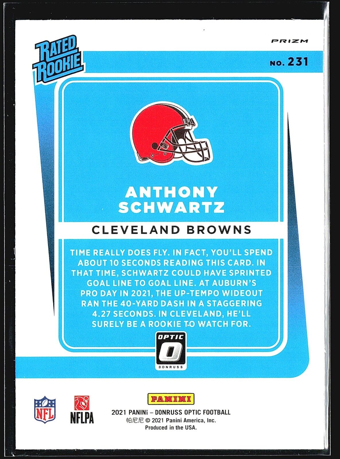 Reviews 2021 Donruss Optic Blue Scope Rated Rookie Anthony Schwartz #231 0 out of 5 stars This product has no reviews yet Write a review Write a review