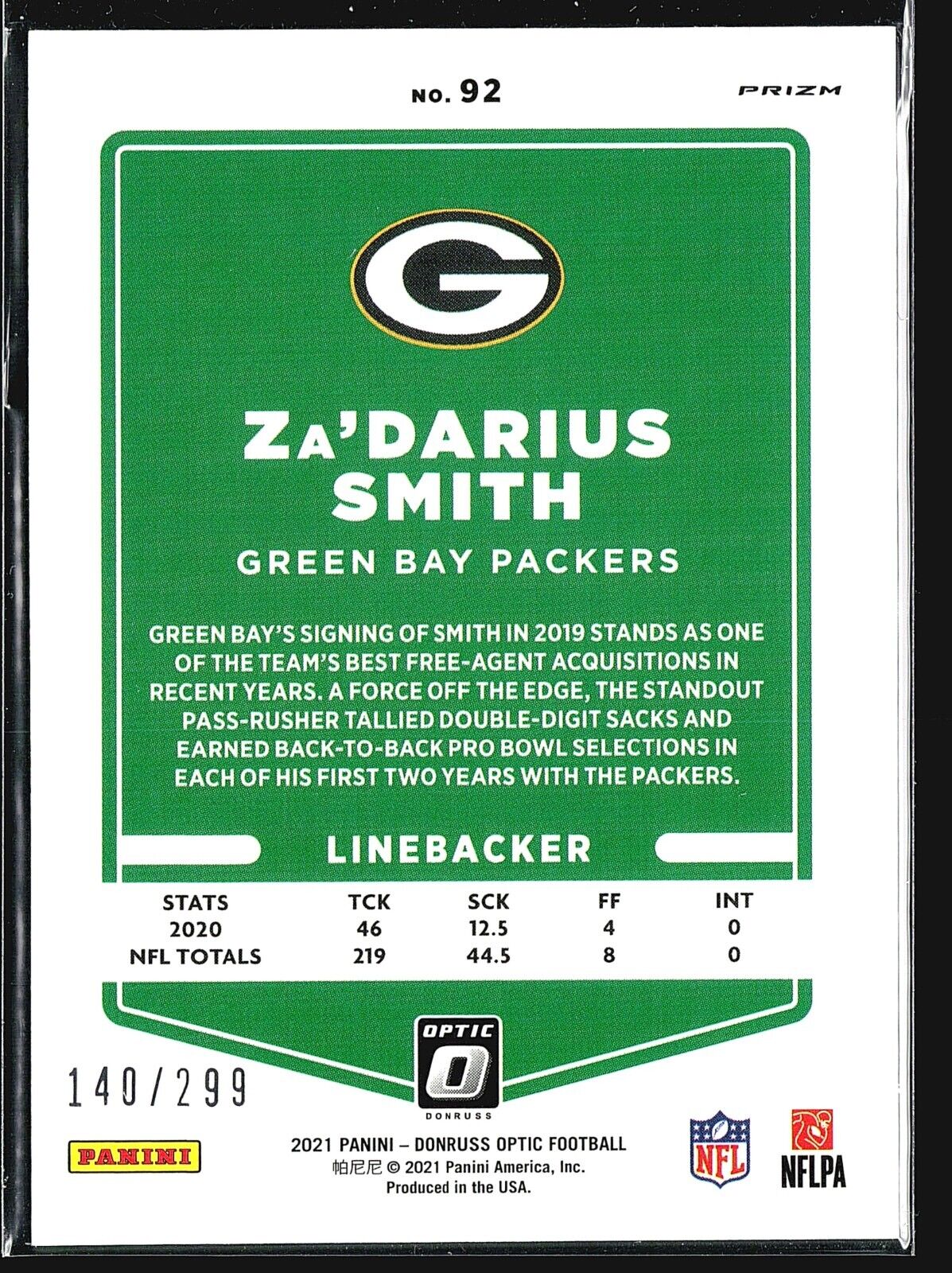 2021 Donruss Optic Blue Za'Darius Smith #92 /299 VendorPanini Share WhatsApp Deel X Pin it Messenger Email Last stock! Product form 2021 Donruss Za'Darius Smith #92 Listed With Mascot. Read more 1 in stock Free pickup in our shop(s) Free pickup in our shop(s) $2.00 Quantity Add to cart This item is a recurring or deferred purchase. By continuing, I agree to the cancellation policy and authorize you to charge my payment method at the prices, frequency and dates listed on this page until my order is fulfilled or I cancel, if permitted.