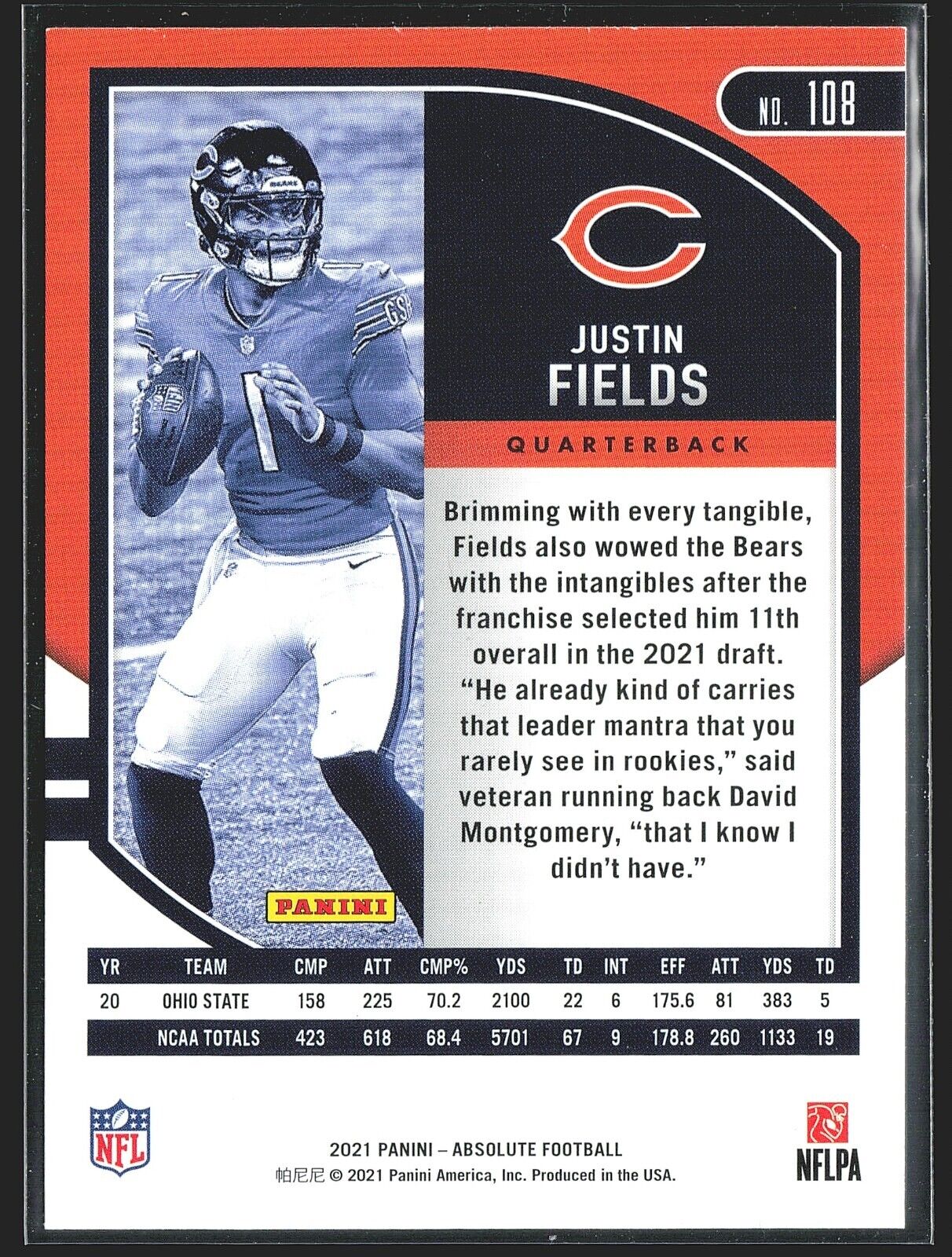 2021 Justin Fields Absolute Rc Rookie #108 Bears