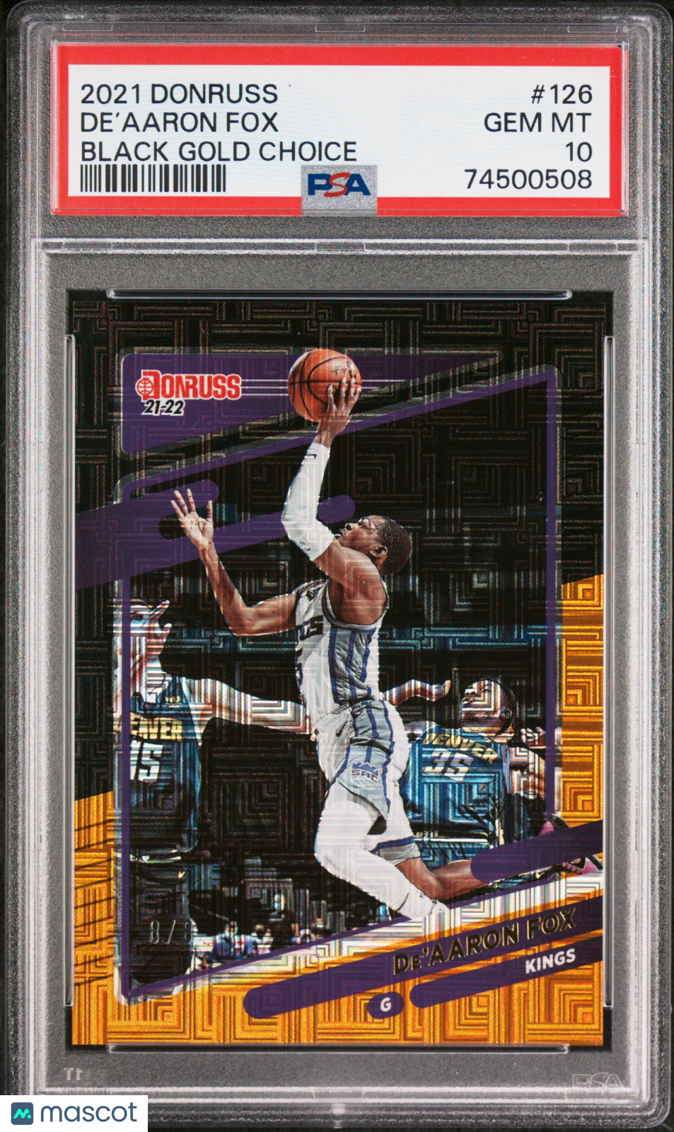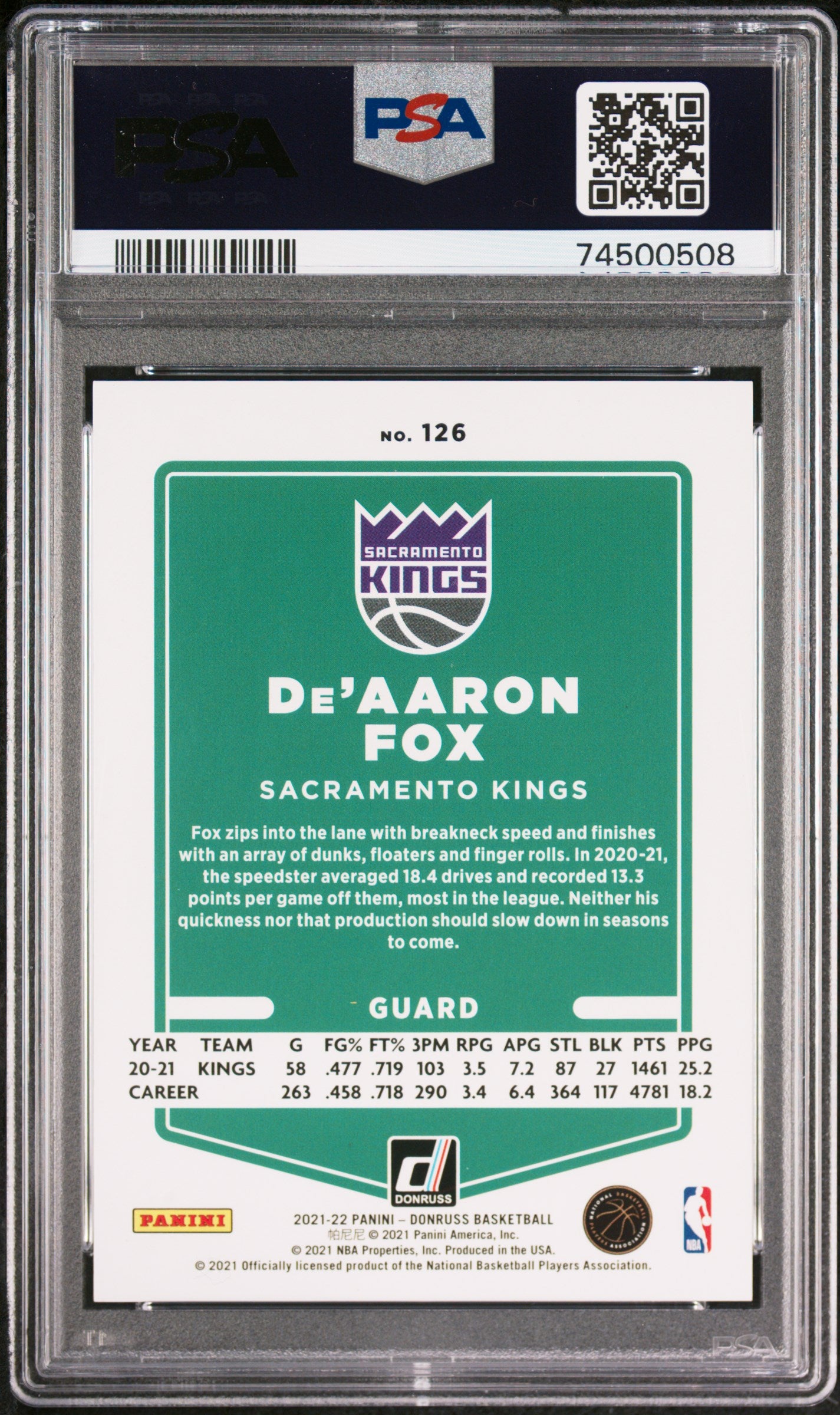 2021 Panini Donruss De’Aaron Fox #126 Black Gold Choice PSA 10
