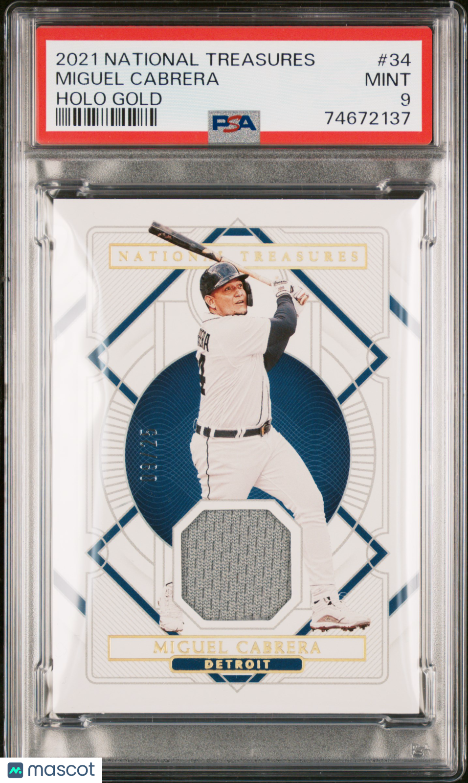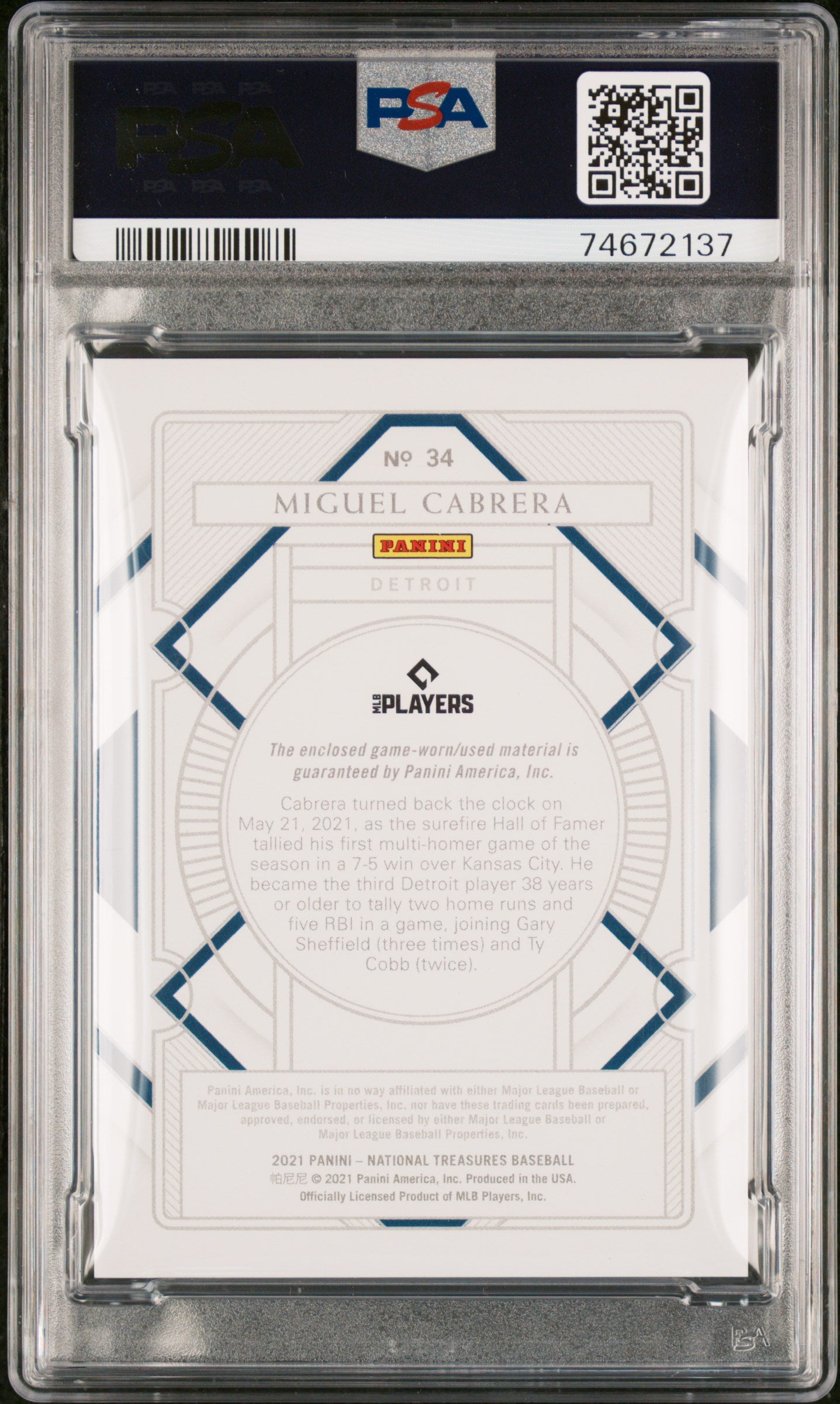 2021 Panini National Treasures Miguel Cabrera #34 Holo Gold PSA 9
