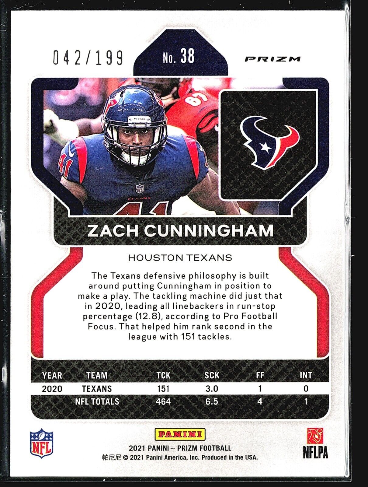2021 Panini Prizm - Blue Wave Prizm #38 Zach Cunningham /199