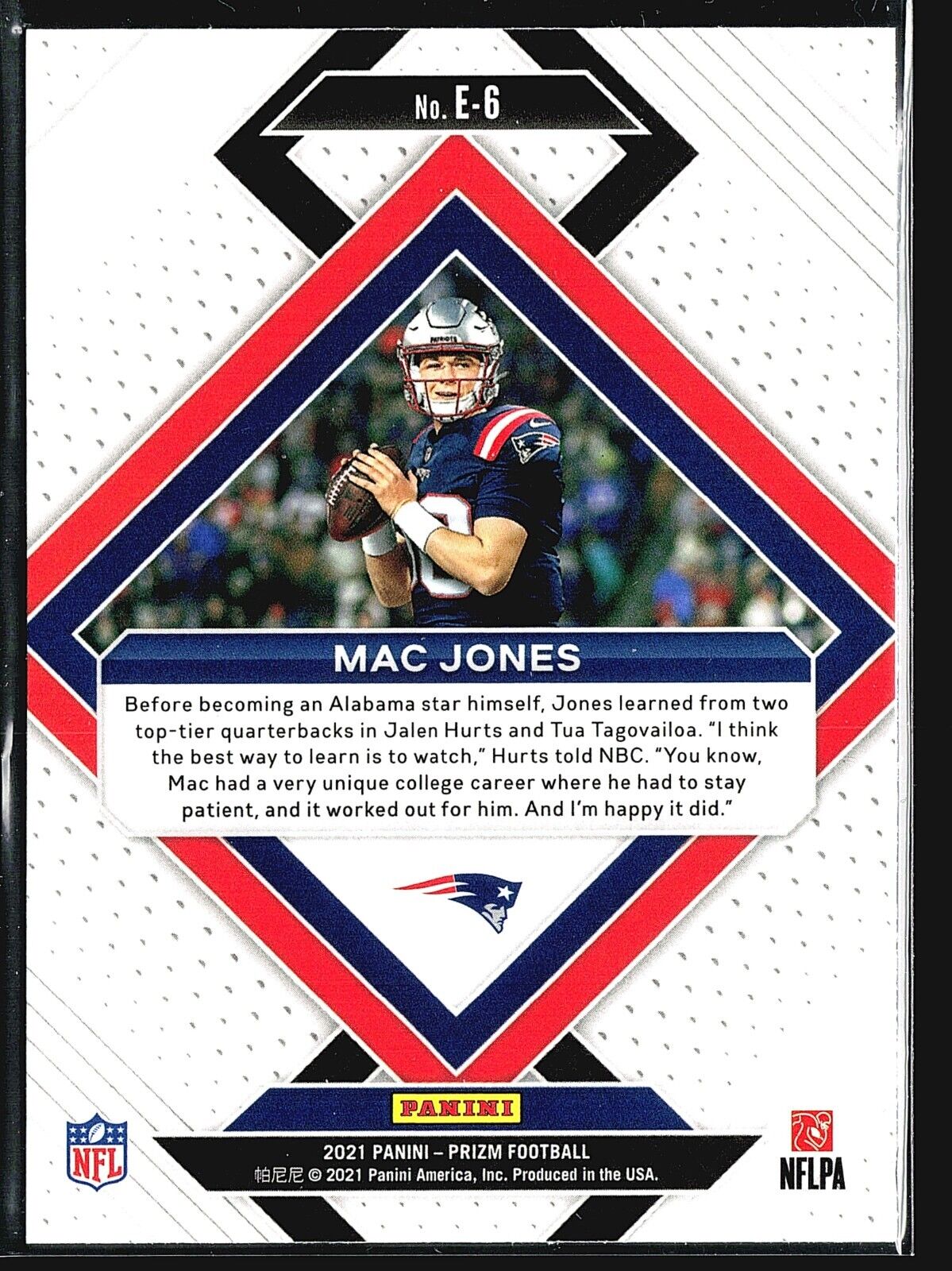 Reviews 2021 Panini Prizm - Emergent #E-6 Mac Jones (RC) 0 out of 5 stars This product has no reviews yet Write a review Write a review