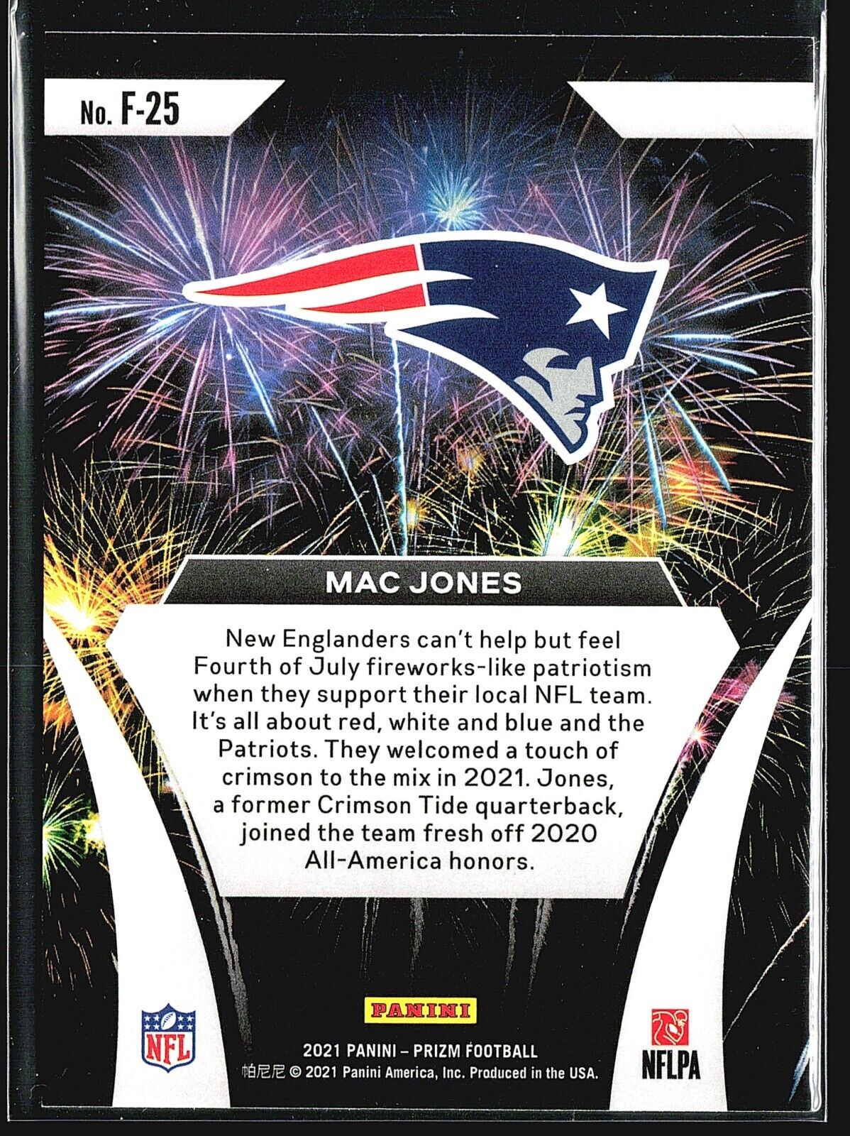 2021 Panini Prizm - Fireworks #F-25 Mac Jones (RC) Listed With Mascot. Read more