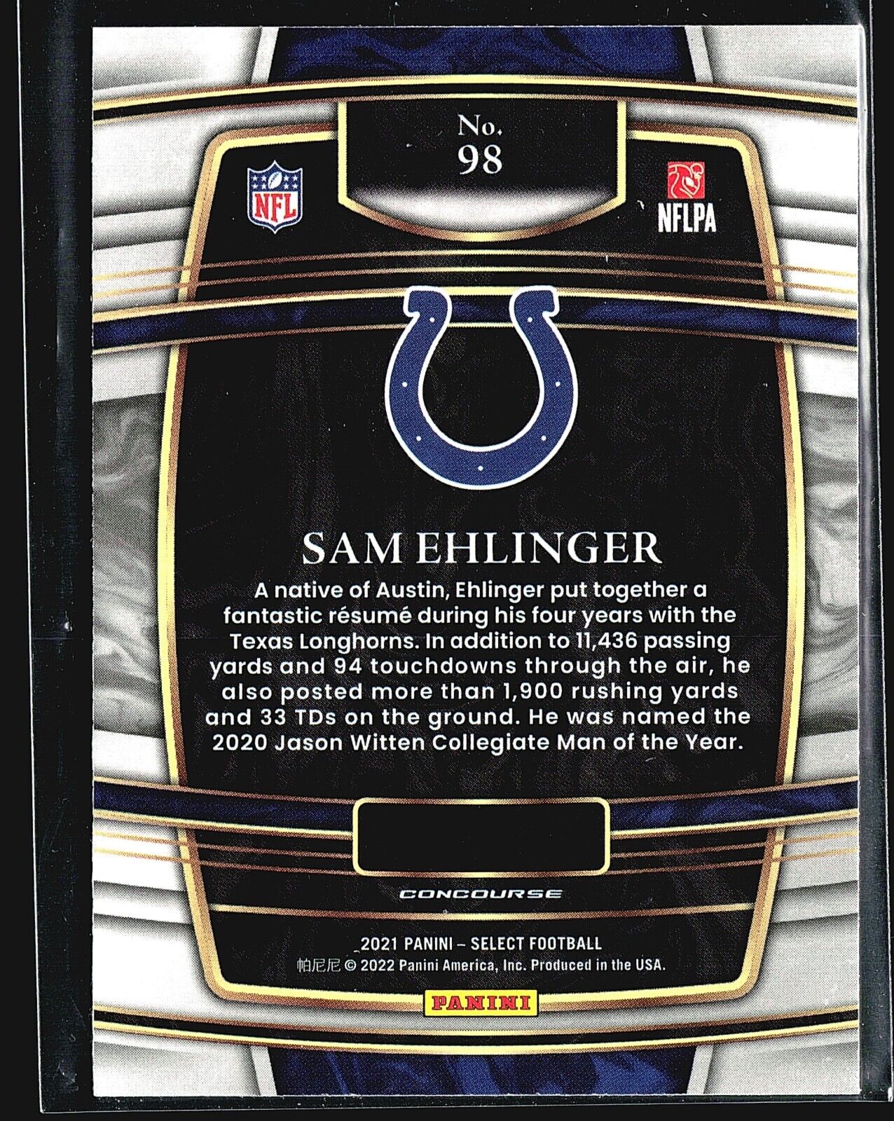 Reviews 2021 Panini Select - Concourse #98 Sam Ehlinger (RC) 0 out of 5 stars This product has no reviews yet Write a review Write a review