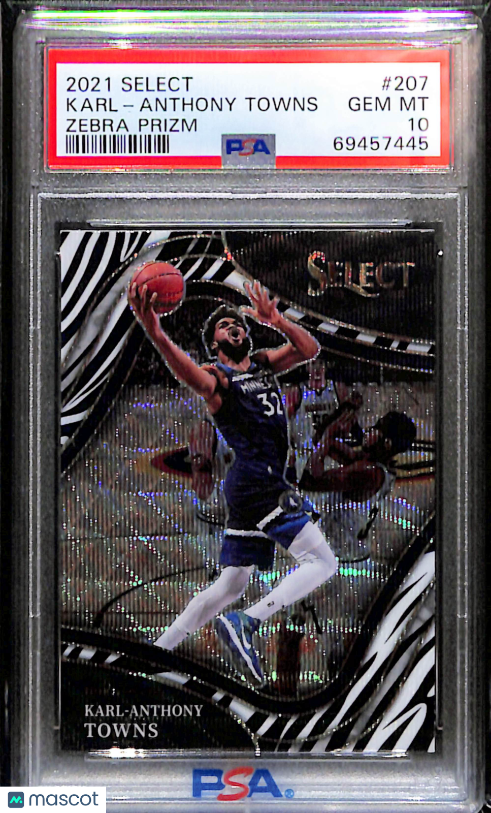 2021 Panini Select Karl-Anthony Towns #207 Zebra Prizm PSA 10