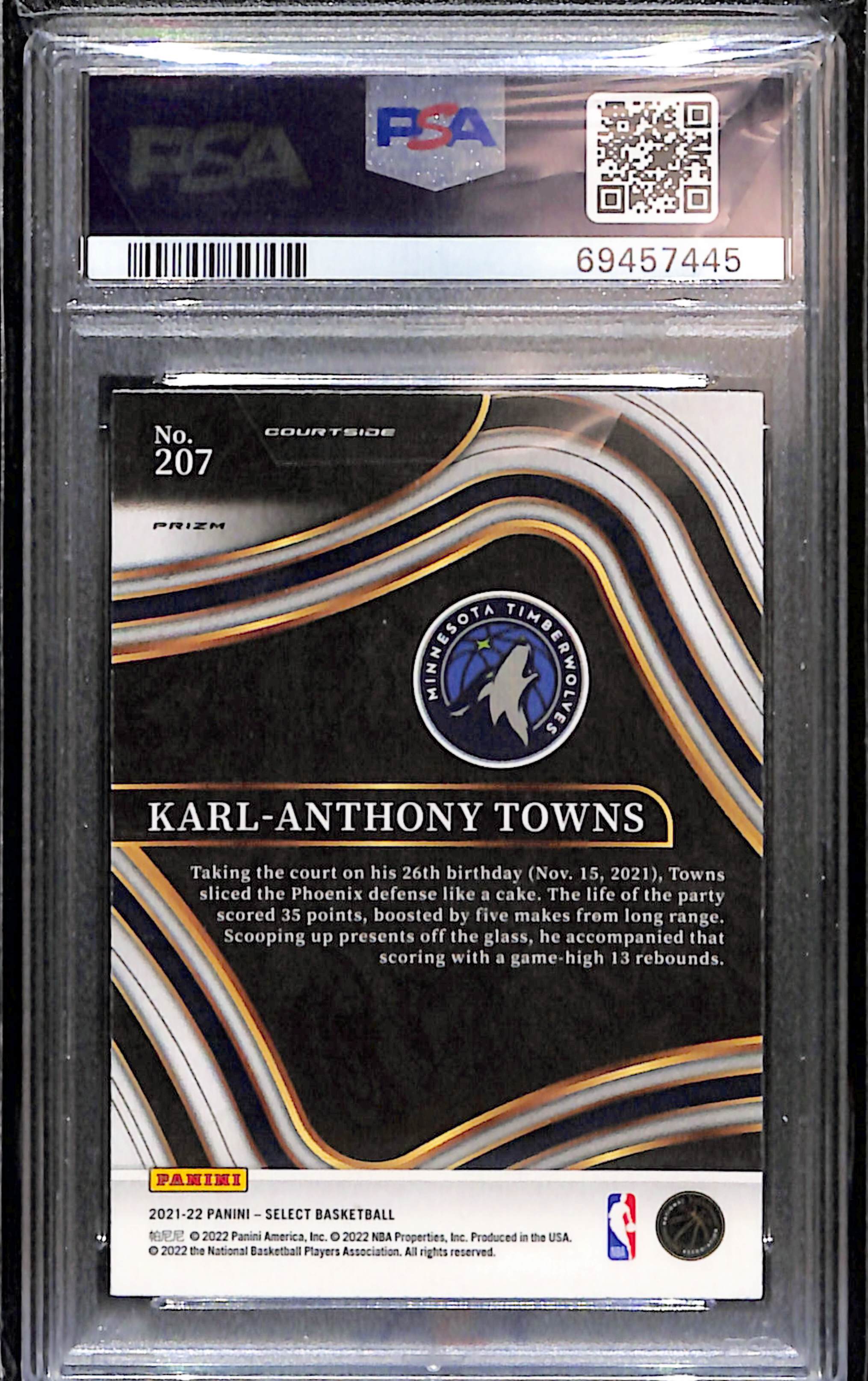 You are purchasing a 2021 Panini Select Karl-Anthony Towns #207 Zebra Prizm PSA 10. You will receive the exact item... Read more