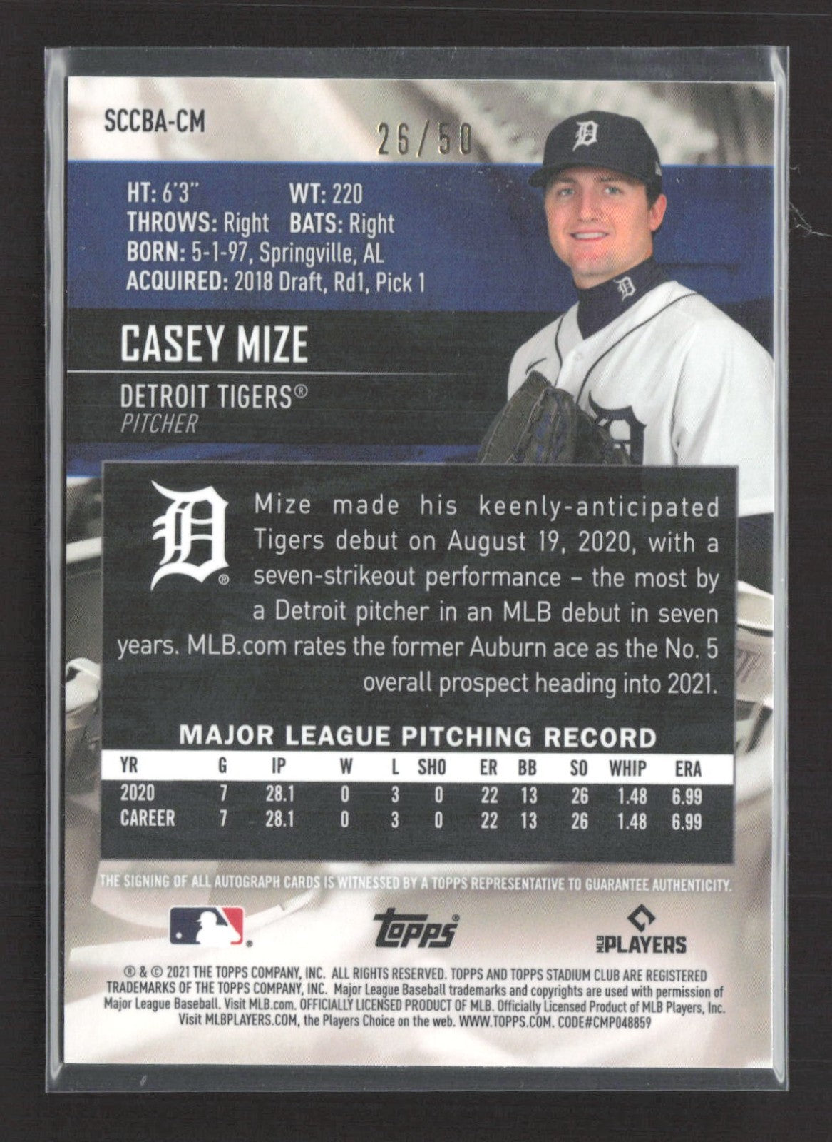 2021 Topps Stadium Club Chrome Auto Casey Mize #SCCBA-CM Gold Refractor /50