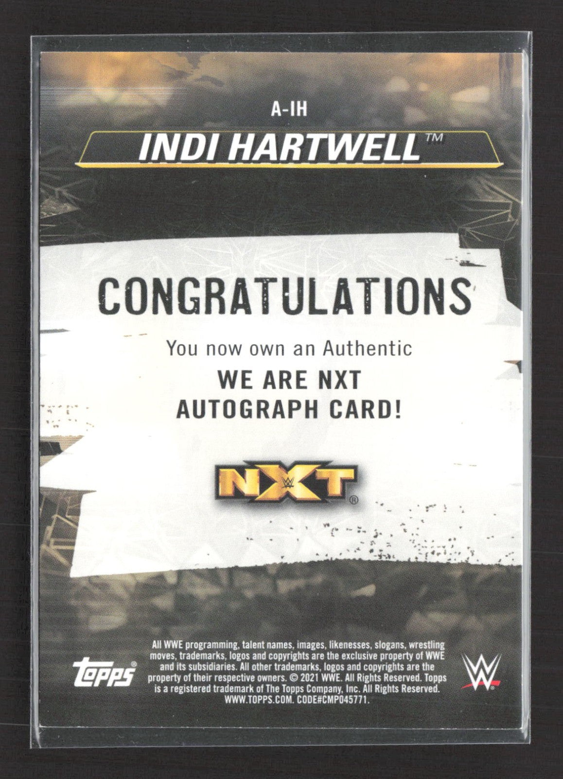 2021 Topps WWE NXT - We Are Nxt Auto Indi Hartwell #A-IH /250 Rc
