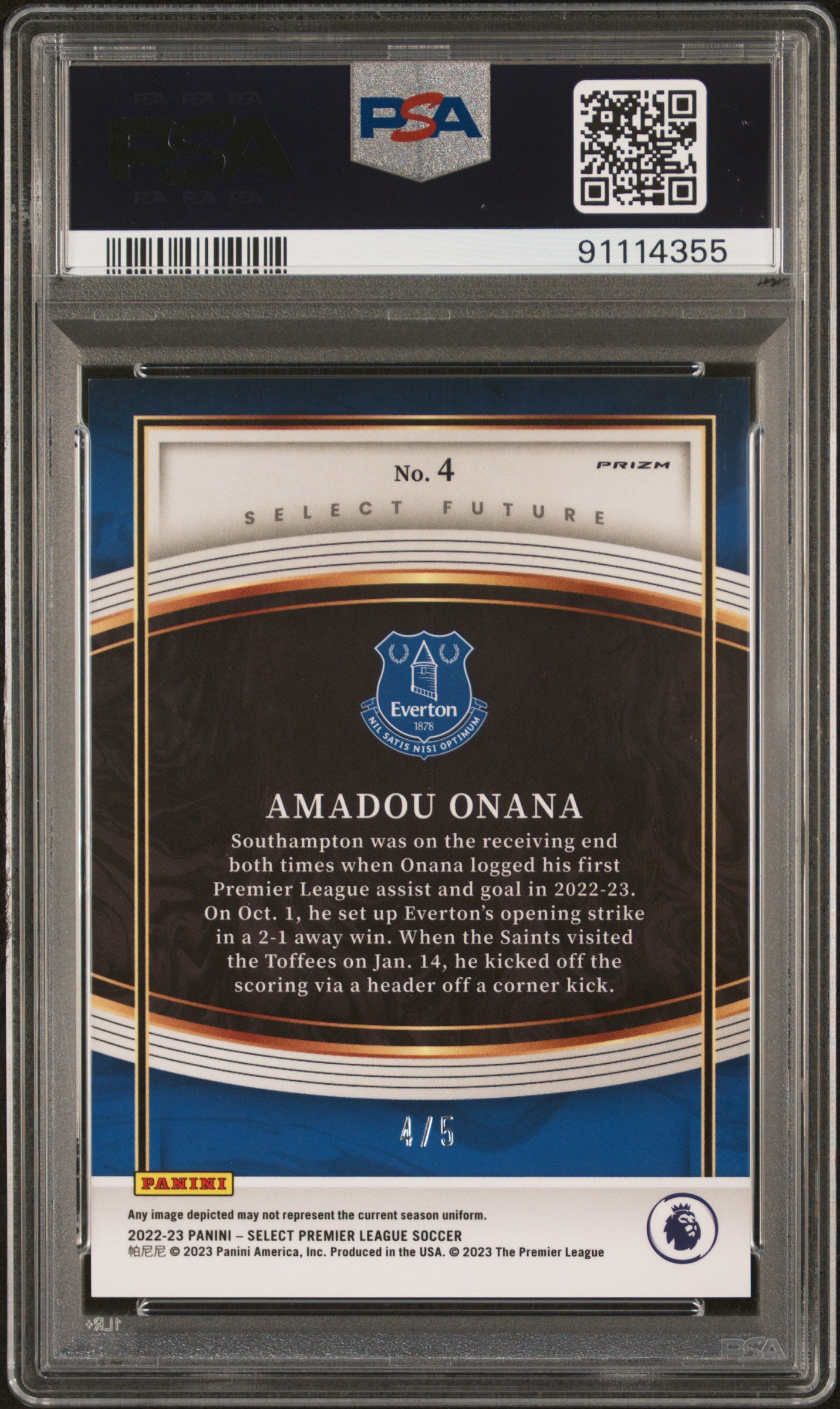 2022-23 Panini Select Select Future Amadou Onana #4 PSA 10 Green Rc /5
