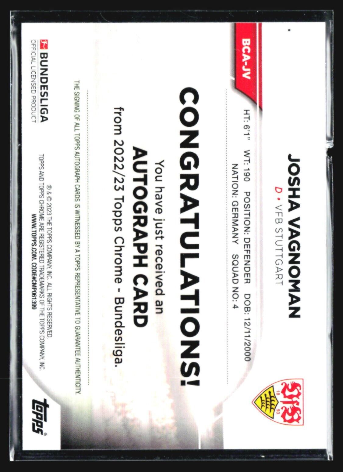 2022-23 Topps Chrome Bundesliga - Chrome Auto #BCA-JV Josha Vagnoman Rc