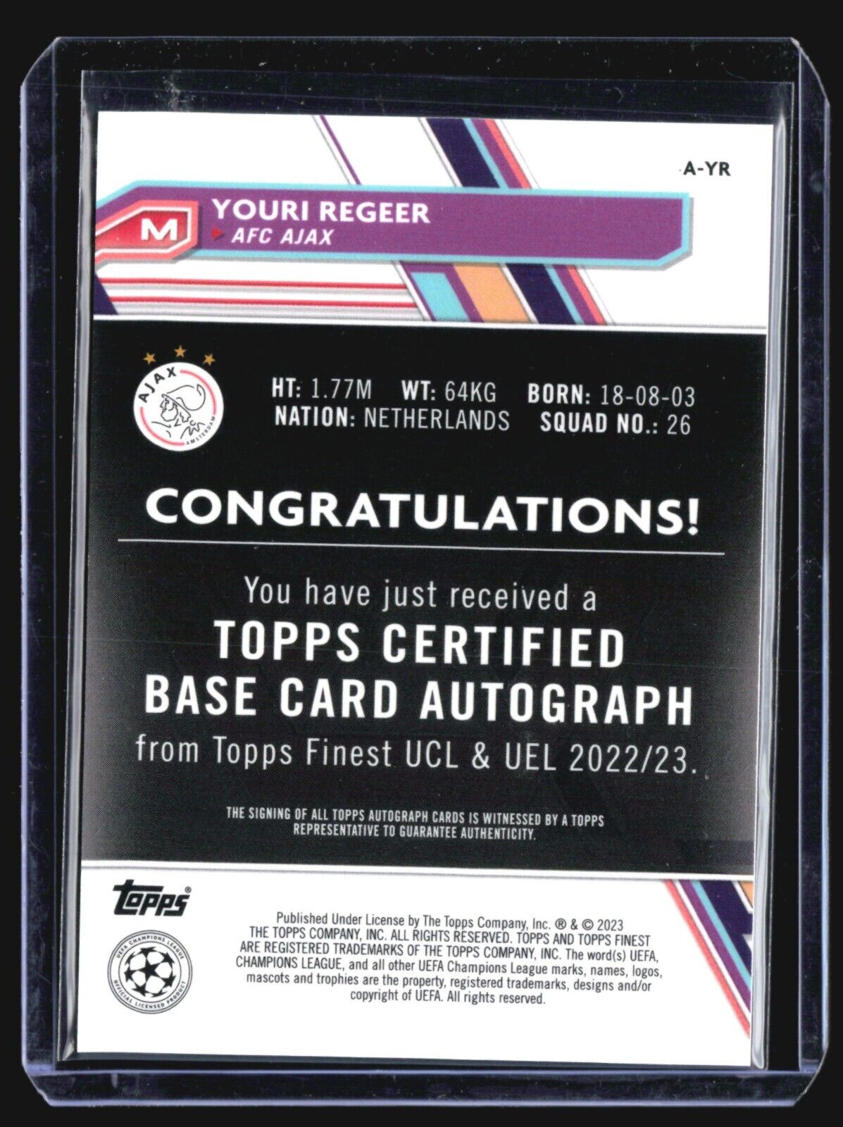 2022-23 Topps Finest Youri Regeer #A-YR Blue Refractor Rc Auto /150