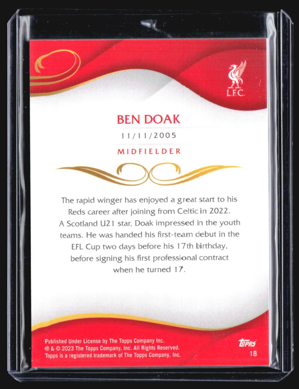 You are purchasing a 2022-23 Topps Liverpool Lineage Ben Doak #18. You will receive the exact card in the photographs.... Read more