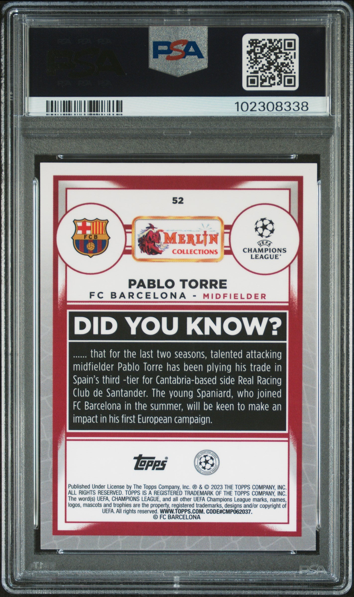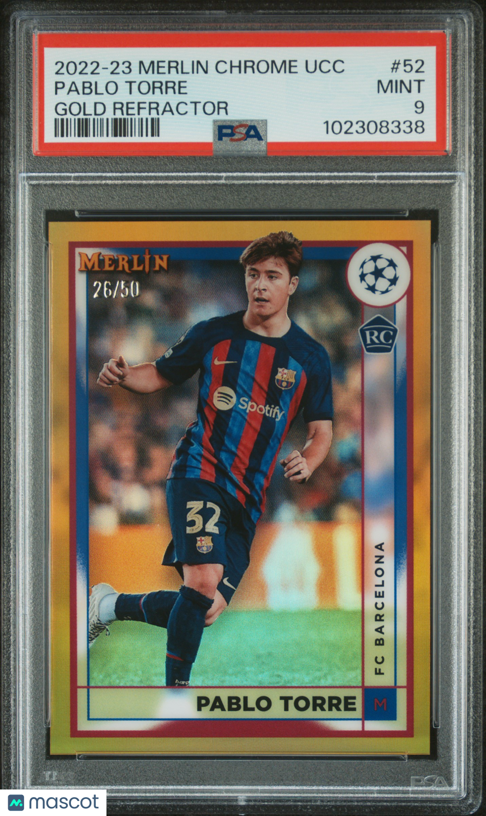 2022-23 Topps Merlin Chrome UEFA Club Pablo Torre #52 Gold Refractor /50 PSA 9