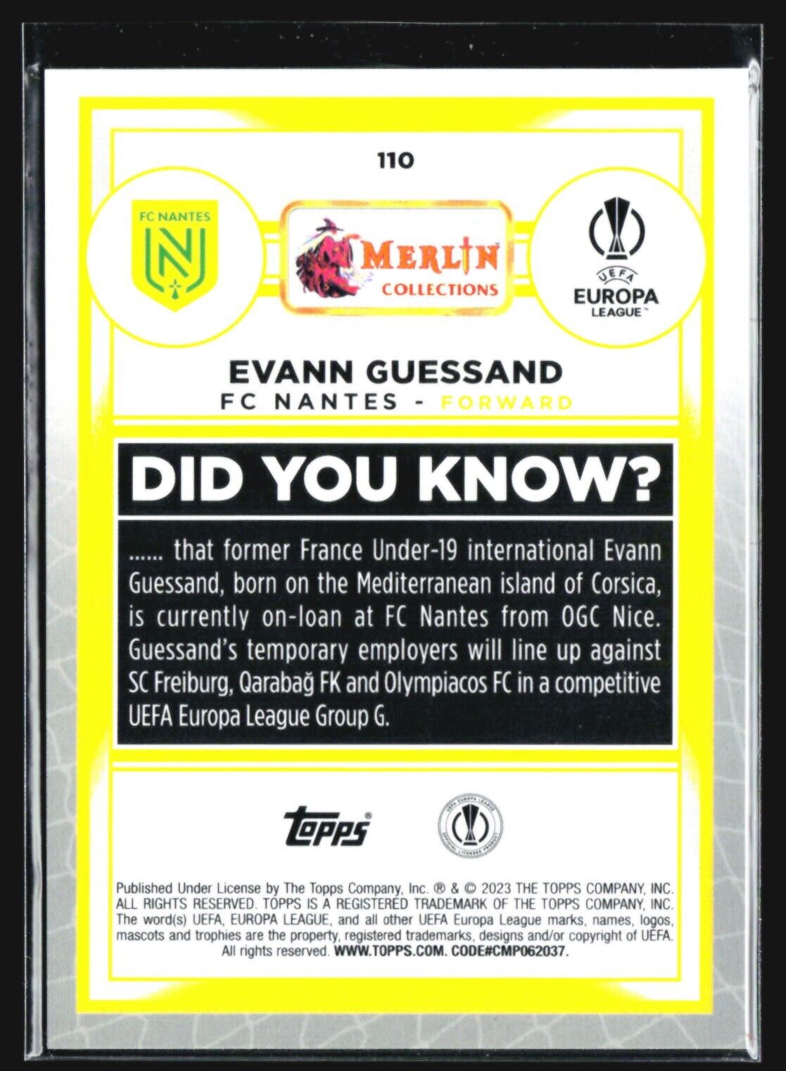 2022-23 Topps Merlin UEFA Club Competitions - #110 Evann Guessand (RC) Teal