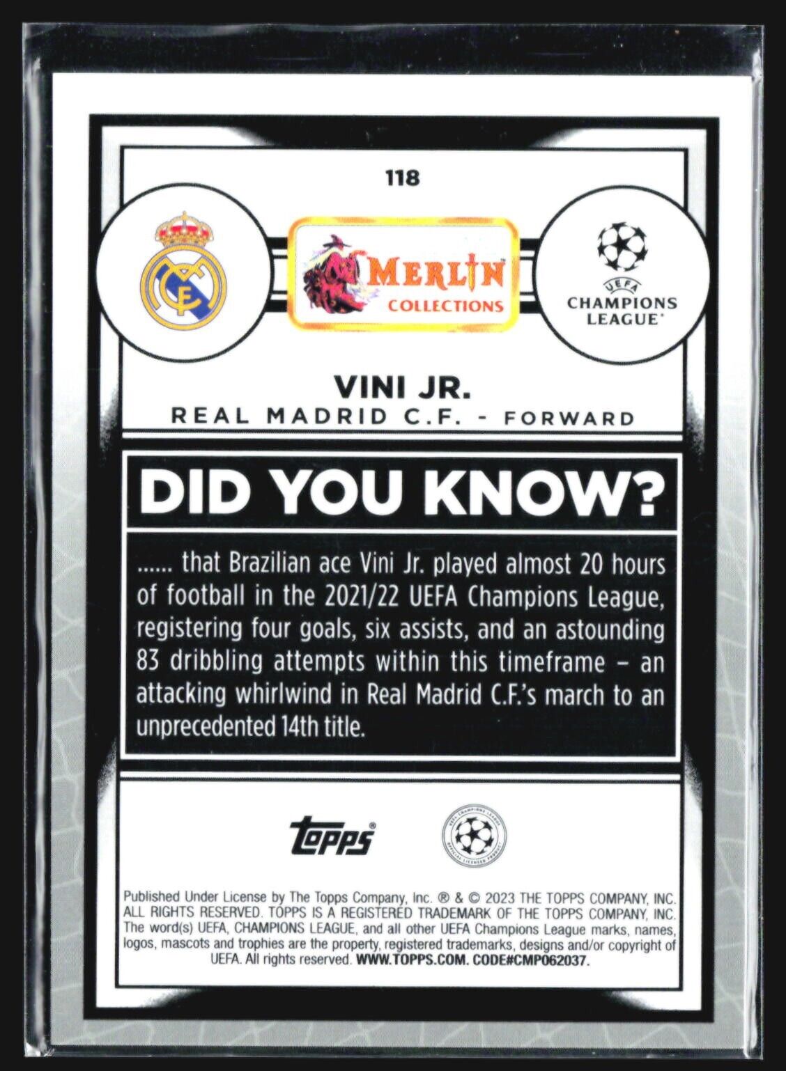 2022-23 Topps Merlin UEFA Club Competitions - #118 Vinicius Junior Teal