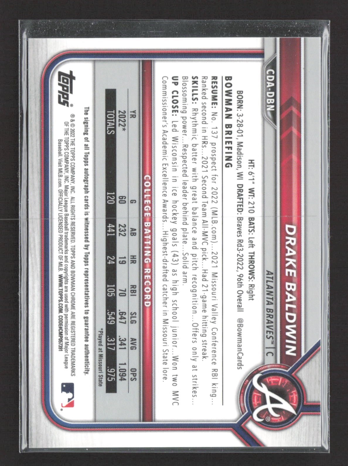 2022 Bowman Chrome Drake Baldwin 1st Chrome Auto #CDA-DBN