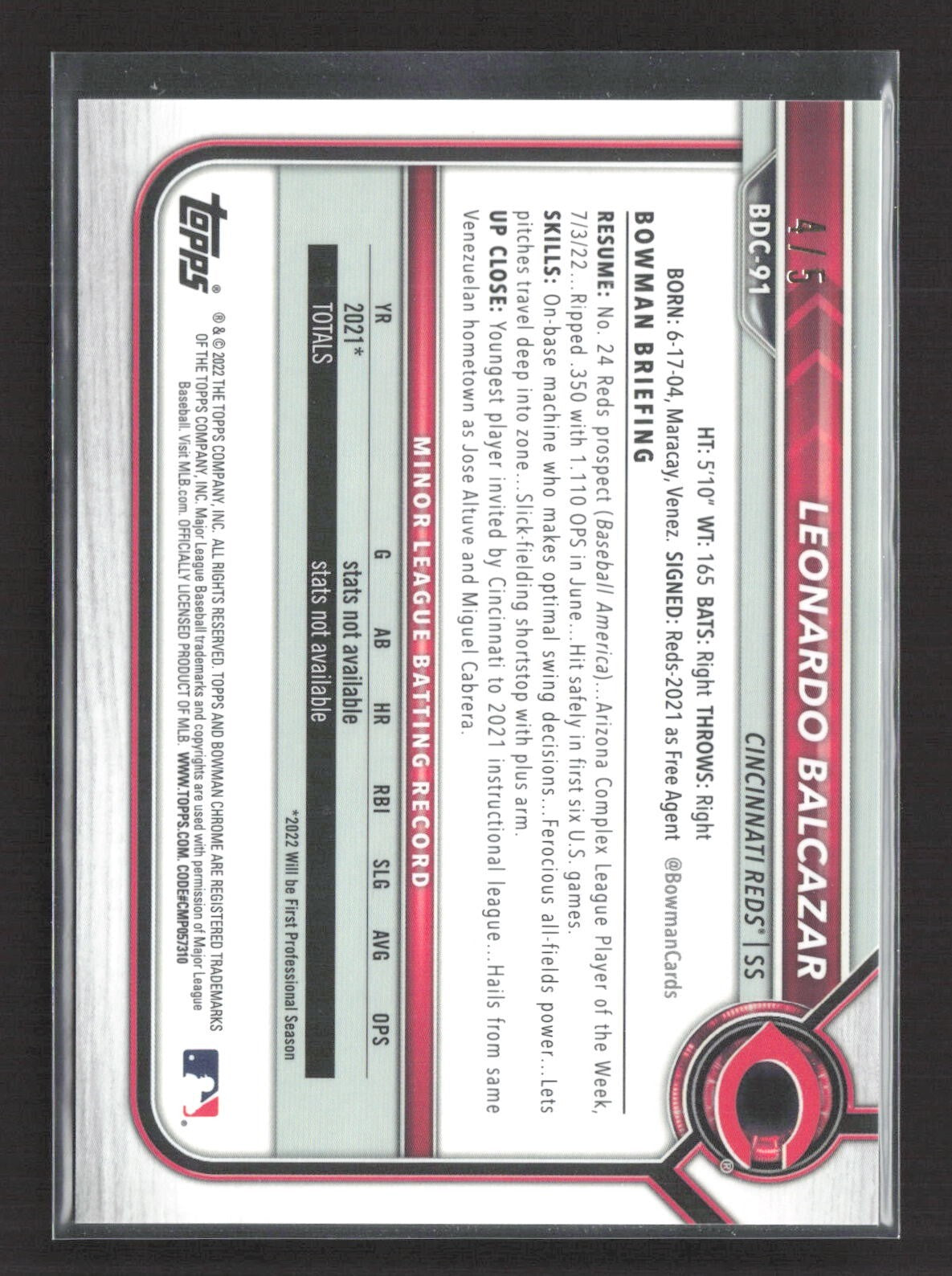 2022 Bowman Draft - Chrome Leonardo Balcazar #BDC-91 Red Wave (RC) /5