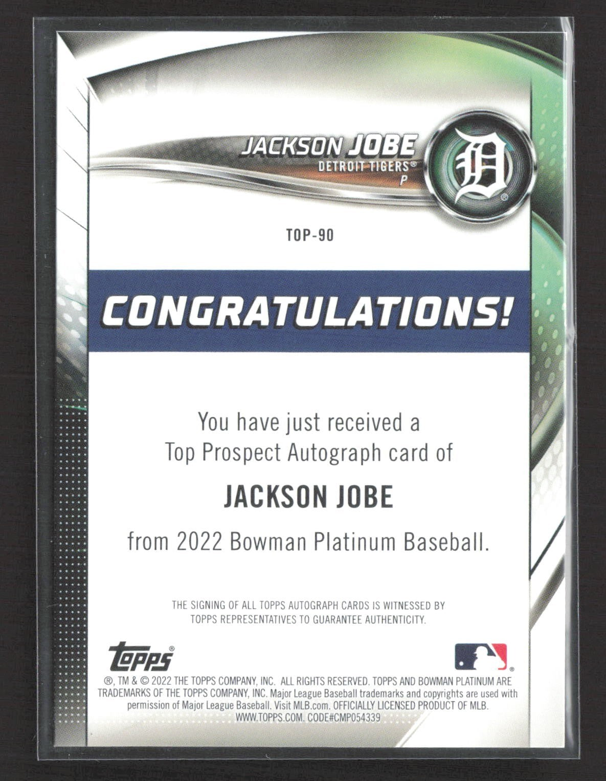 2022 Bowman Platinum Jackson Jobe Rc Auto #TOP-90