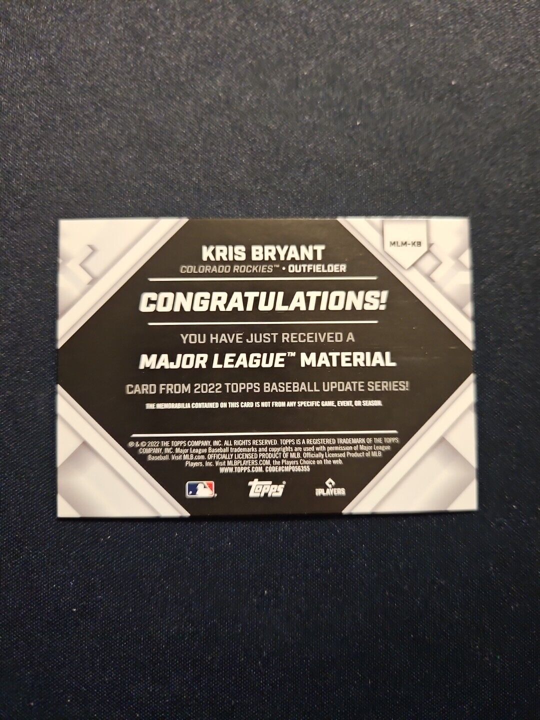2022 Kris Bryant Topps Major League Materials GU Bat Relic /199 Rockies