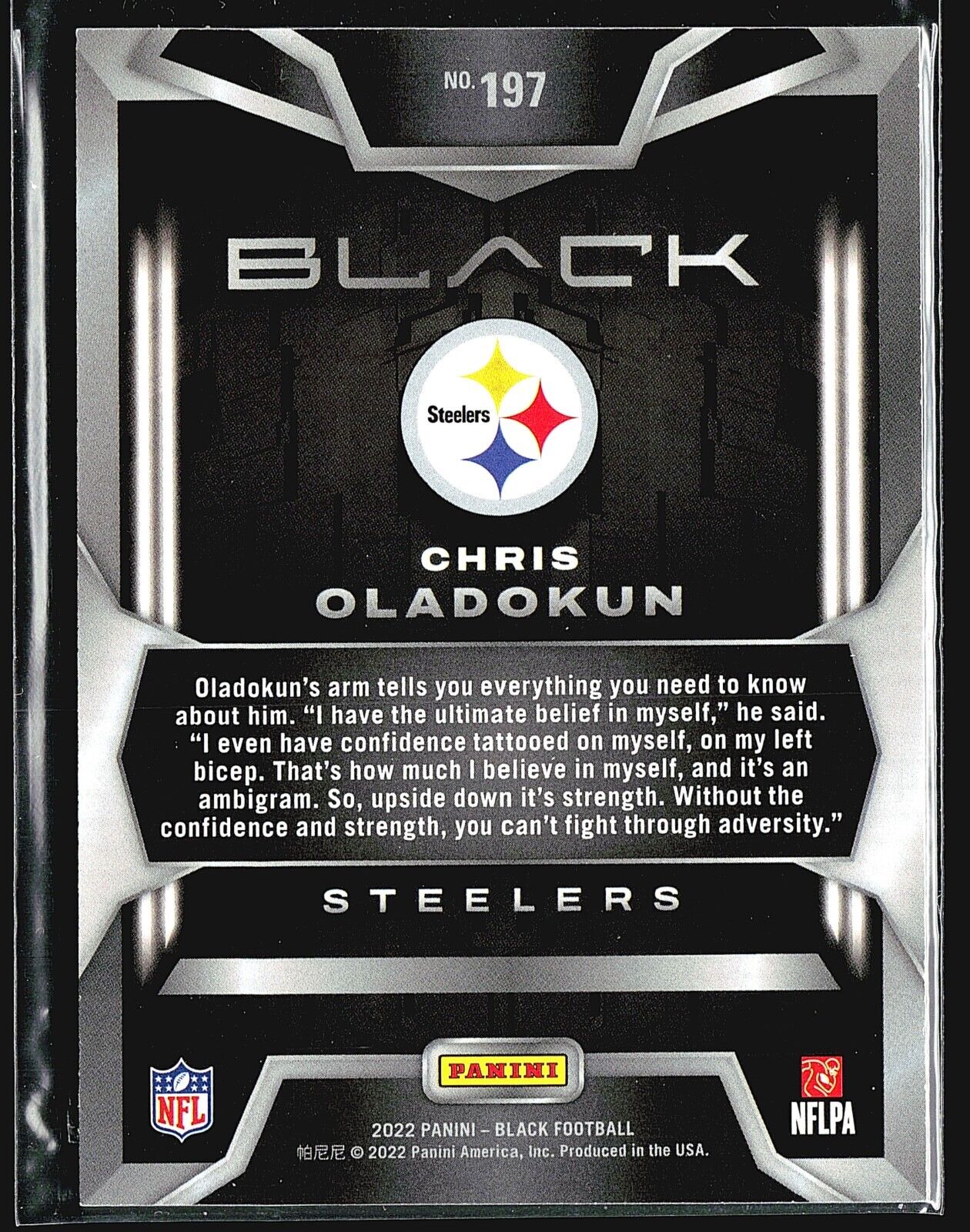 Reviews 2022 Panini Black - Rookies #197 Chris Oladokun (RC) 0 out of 5 stars This product has no reviews yet Write a review Write a review