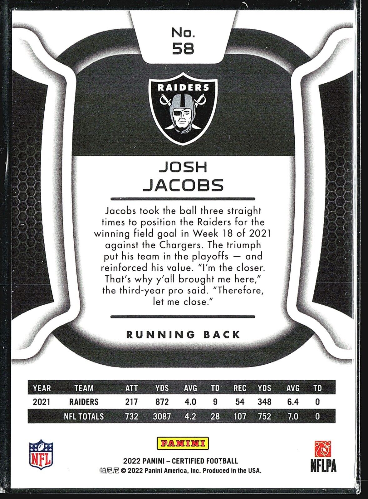 2022 Panini Certified - #58 Josh Jacobs /349