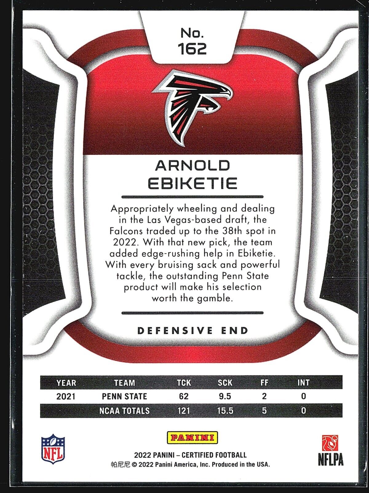 2022 Panini Certified - Rookies #162 Arnold Ebiketie /399 (RC) Listed With Mascot. Read more