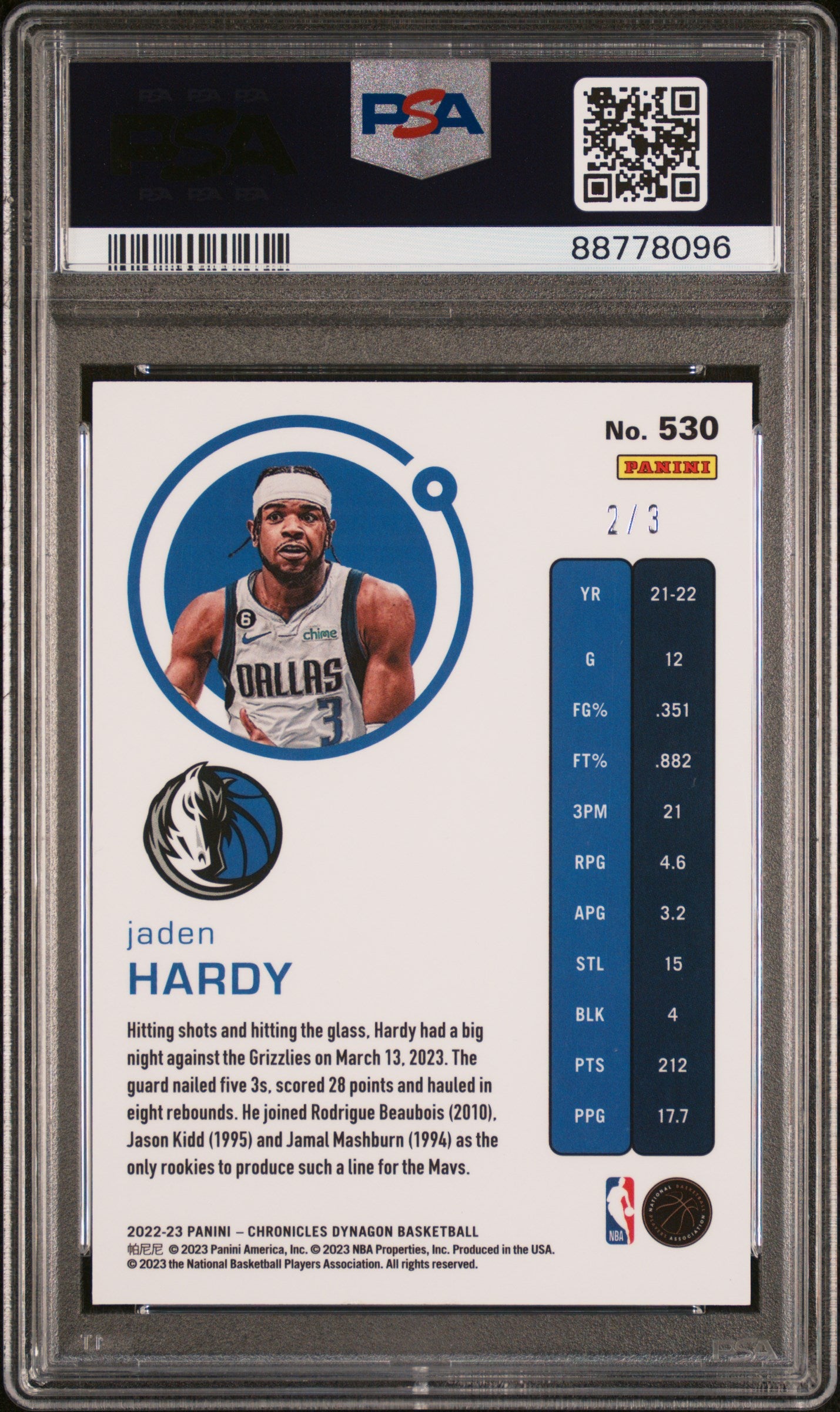 2022 Panini Chronicles Jaden Hardy #530 Asia Red And Gold PSA 10