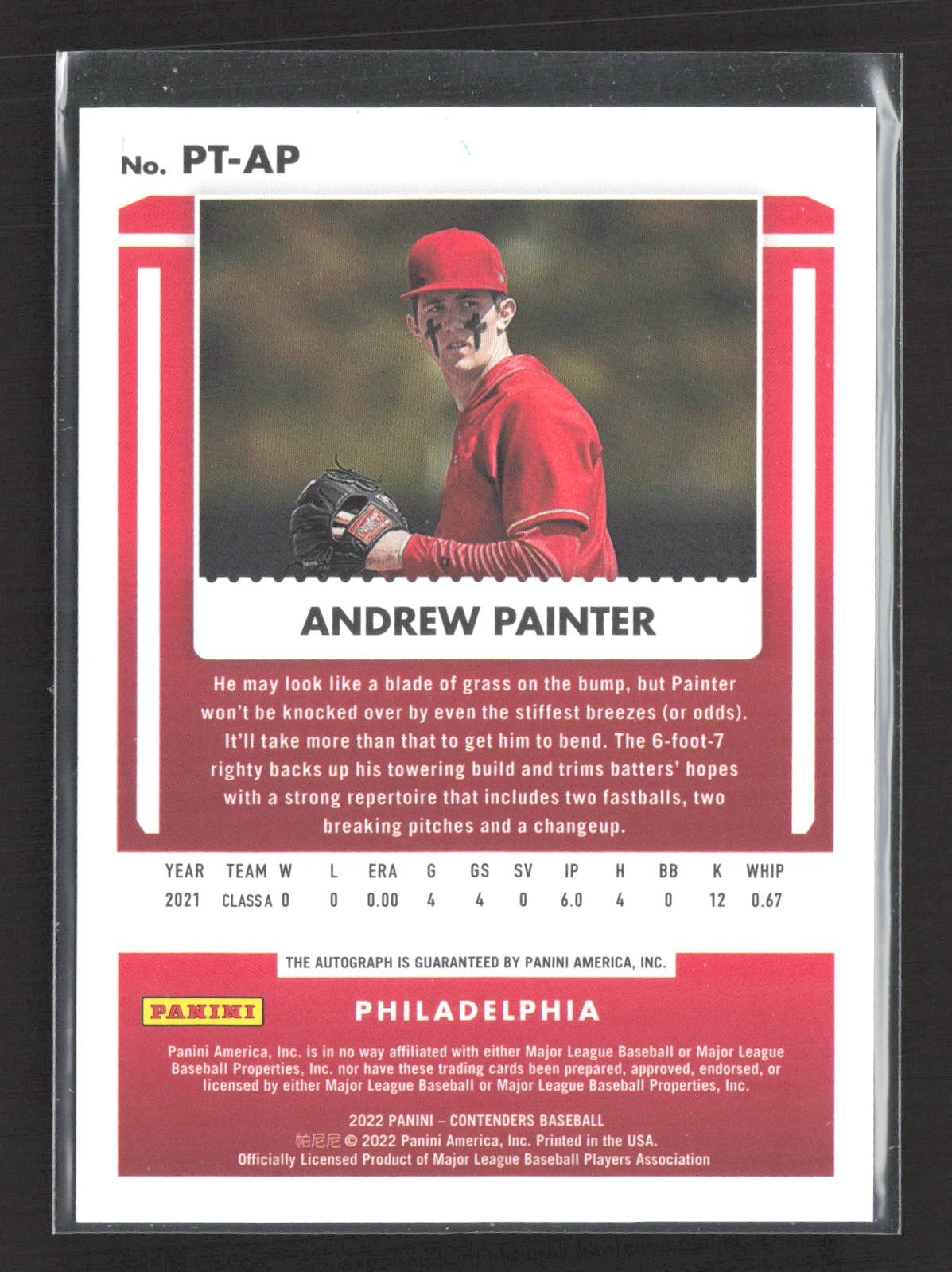 2022 Panini Contenders Prospect Ticket Andrew Painter Cracked Ice /23 Auto Rc