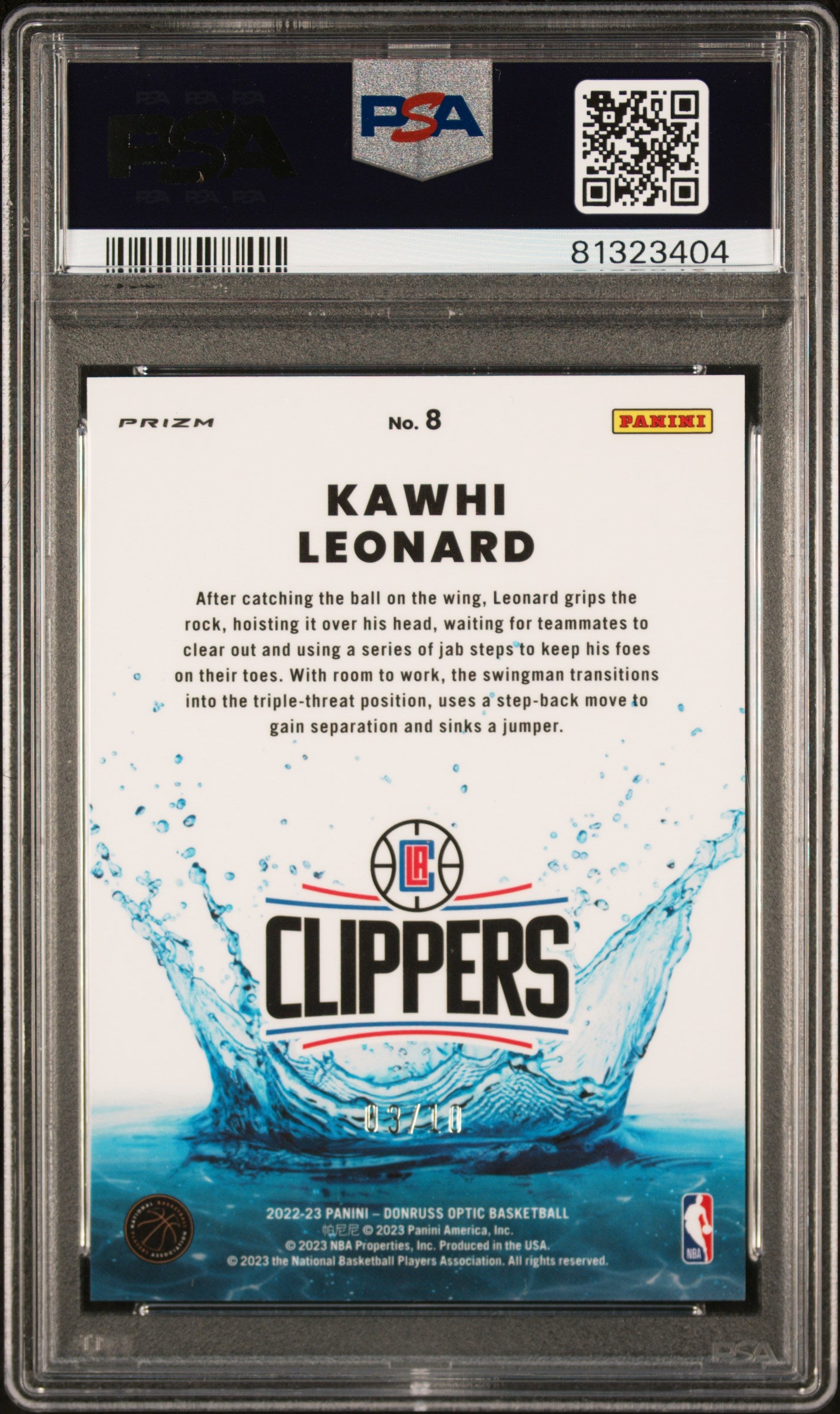 2022 Panini Donruss Optic Splash! Kawhi Leonard #8 Gold PSA 10