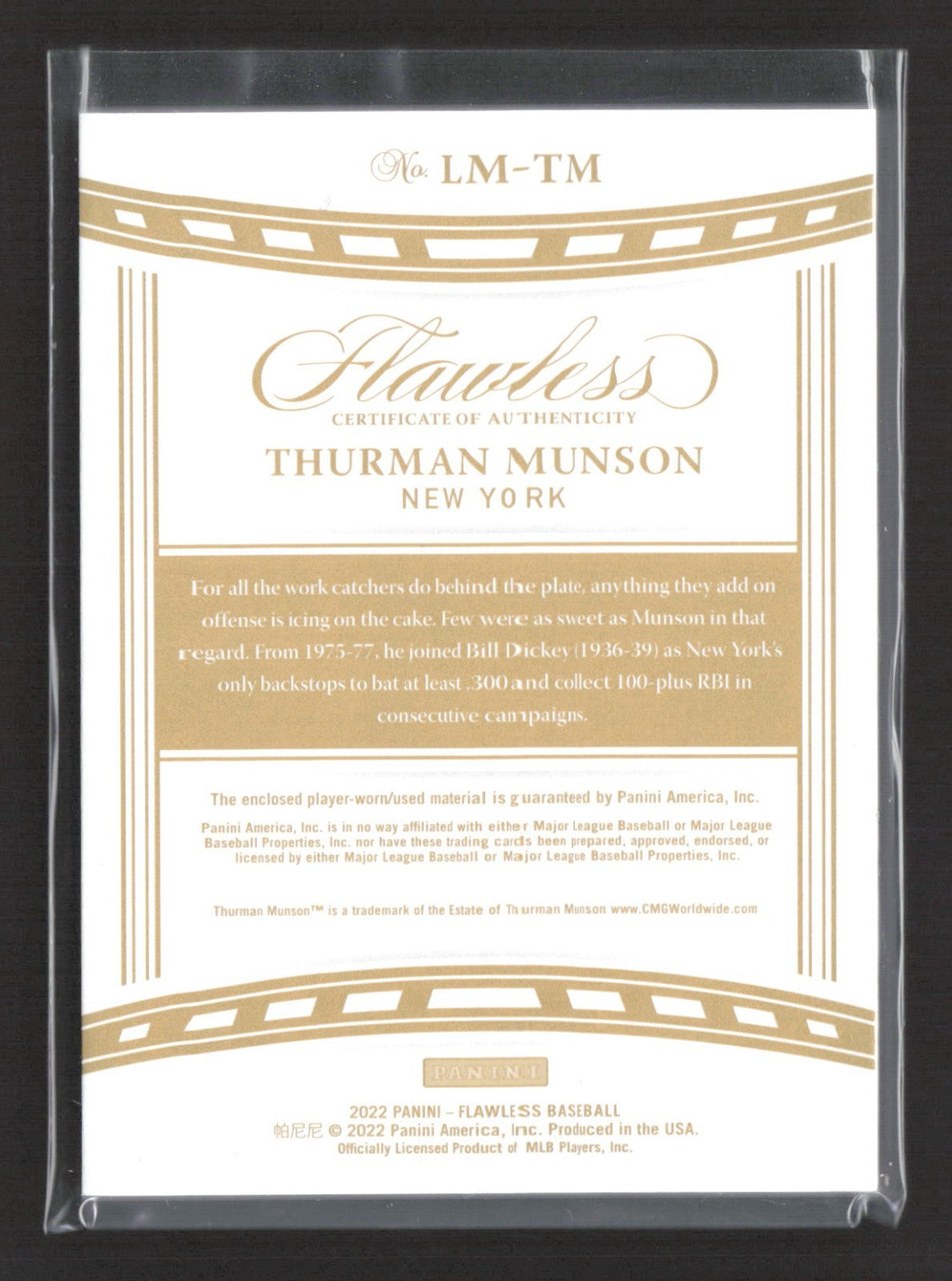 2022 Panini Flawless Legends Patch Thurman Munson #LM-TM Ruby /20