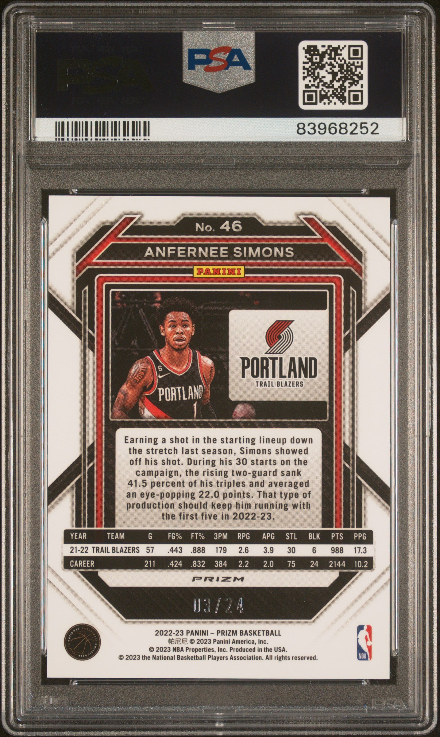 2022 Panini Prizm Anfernee Simons #46 PSA 10