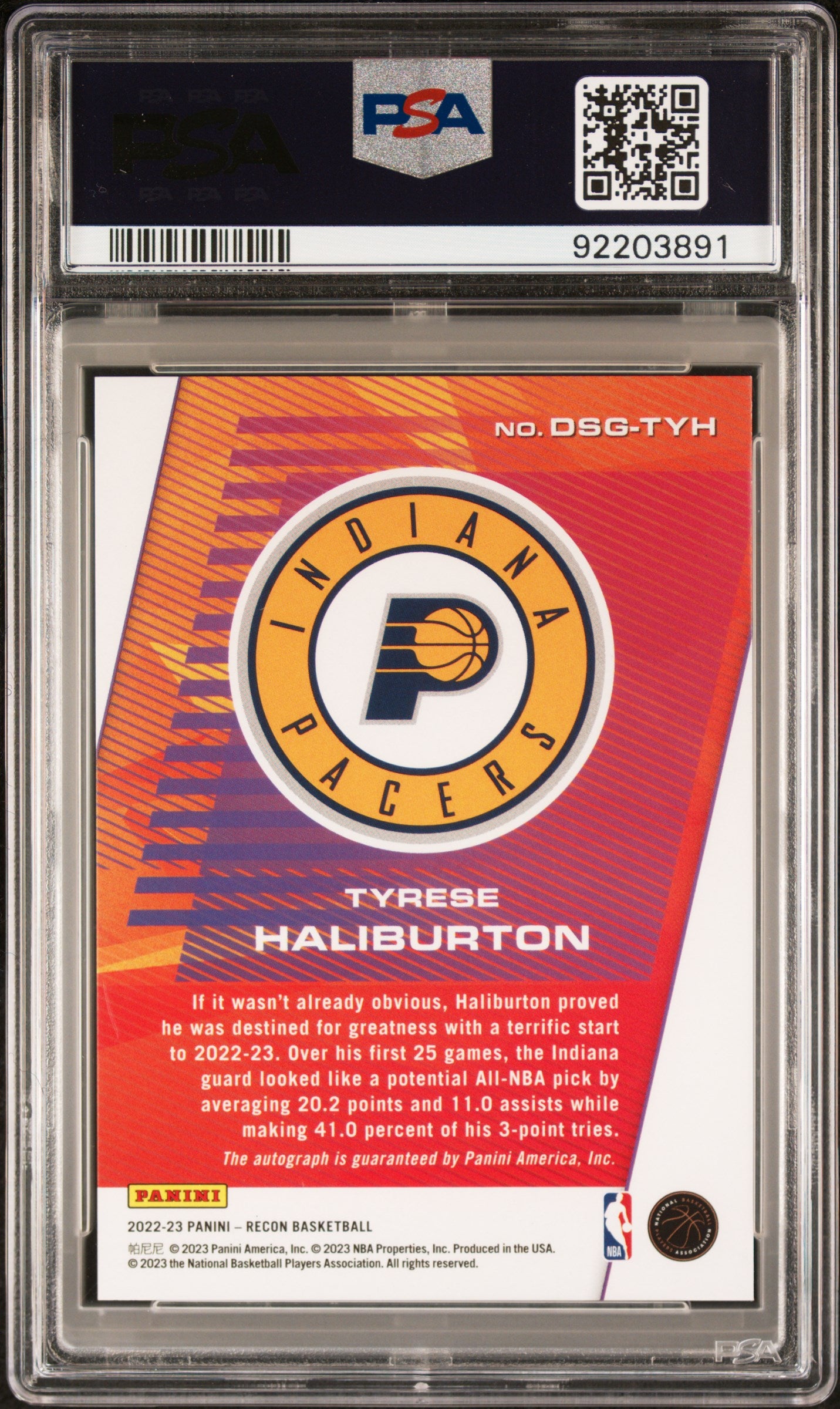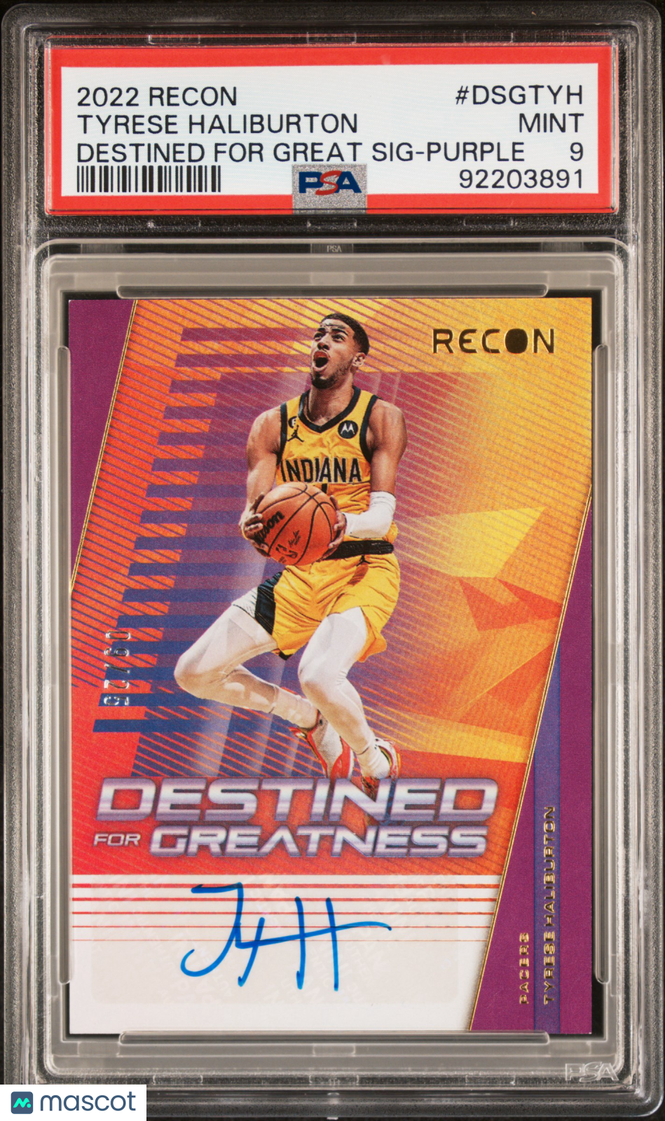 2022 Panini Recon Destined For Greatness Tyrese Haliburton Purple PSA 9 Auto