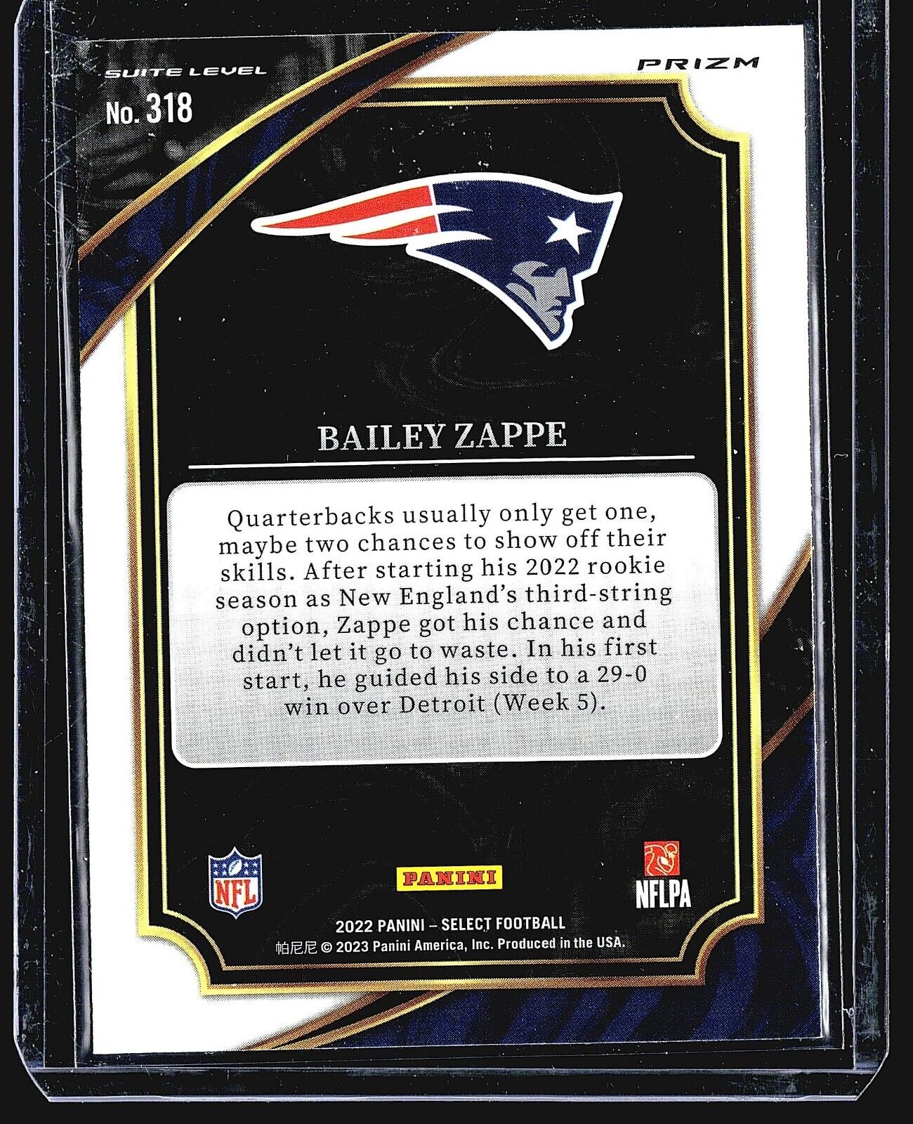 2022 Panini Select - Suite Level Silver Prizm #318 Bailey Zappe (RC) Listed With Mascot. Read more