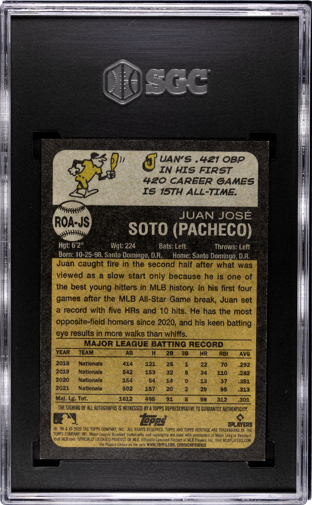 2022 Topps Heritage Juan Soto #ROA-JS Real One Autograph Red Ink SGC 9.5