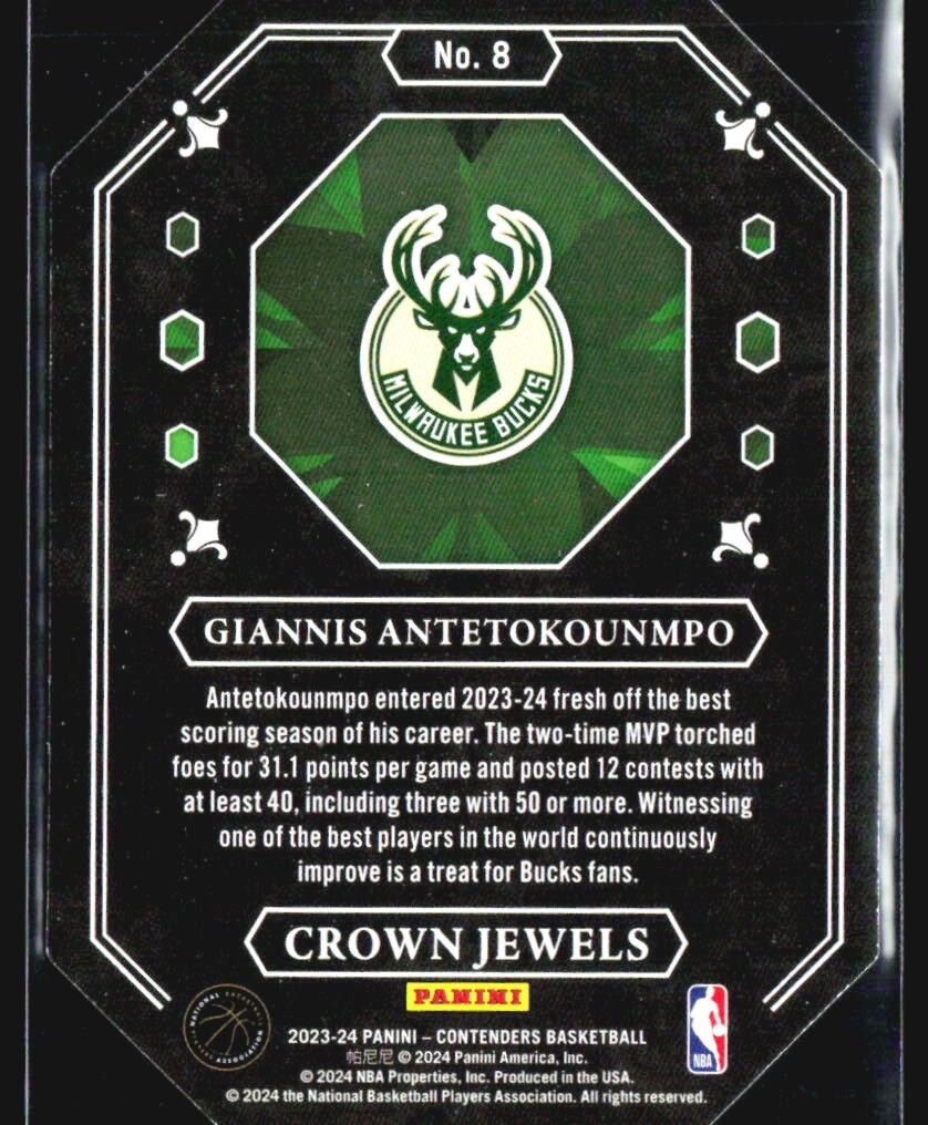 2023-24 Panini Contenders Crown Jewels Giannis Antetokounmpo #8