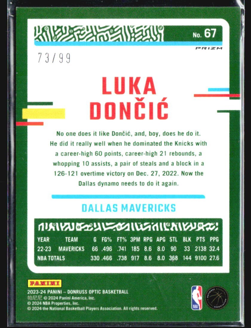 2023-24 Panini Donruss Optic - Luka Dončić #67 Purple Fast Break Prizm /99