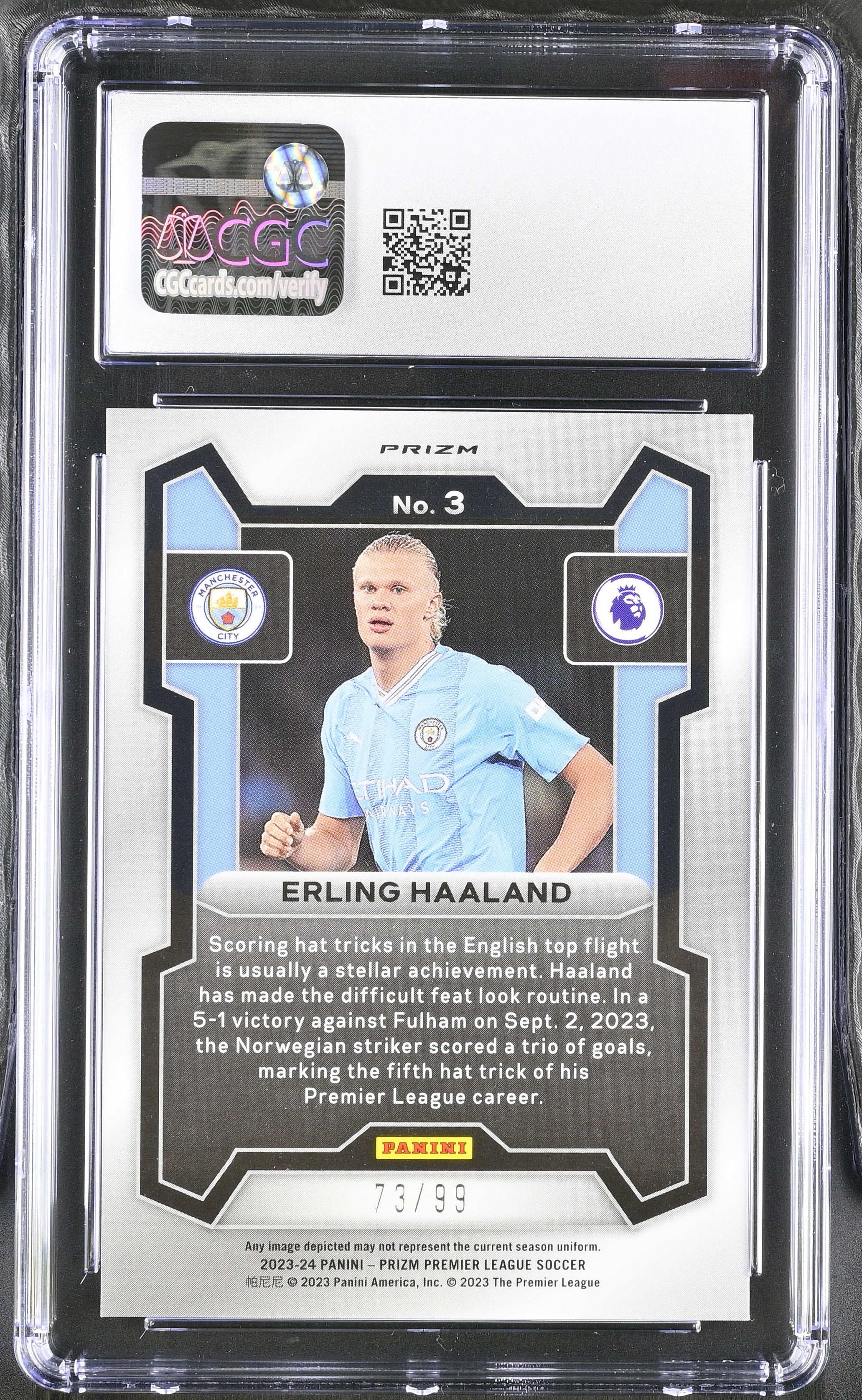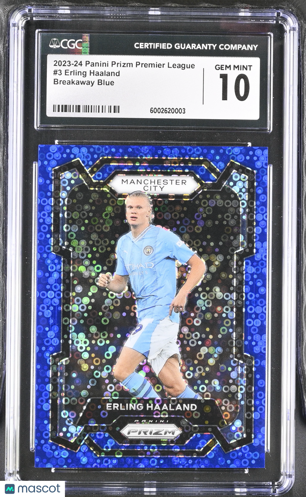 2023-24 Panini Prizm Premier League Erling Haaland #3 Breakaway Blue CGC 10