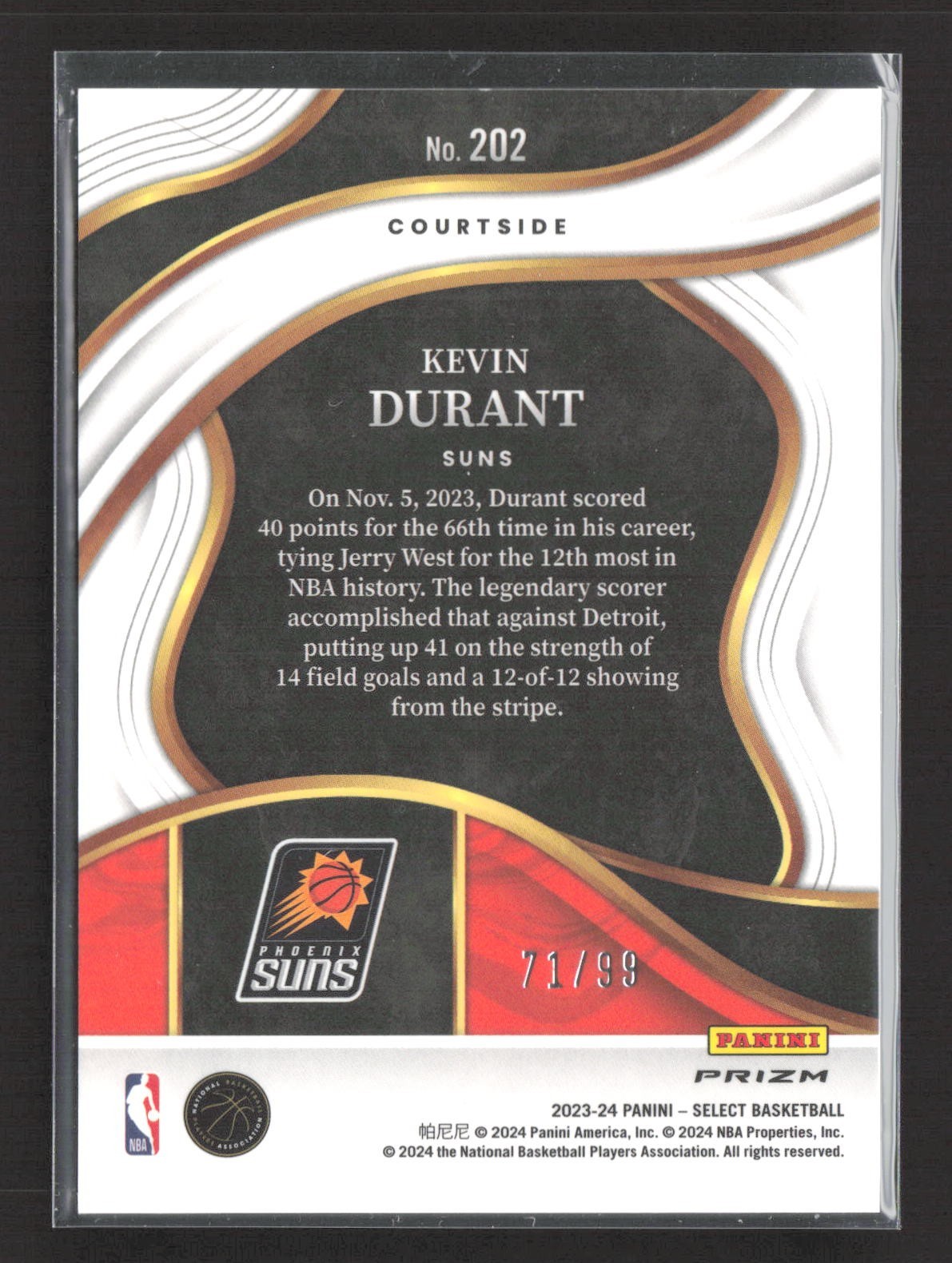 2023-24 Panini Select - Courtside Kevin Durant #202 Purple Cracked Ice Prizm /99