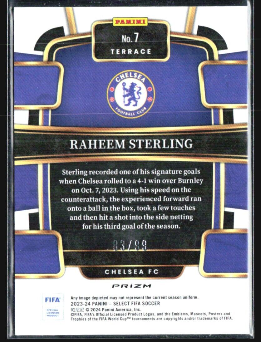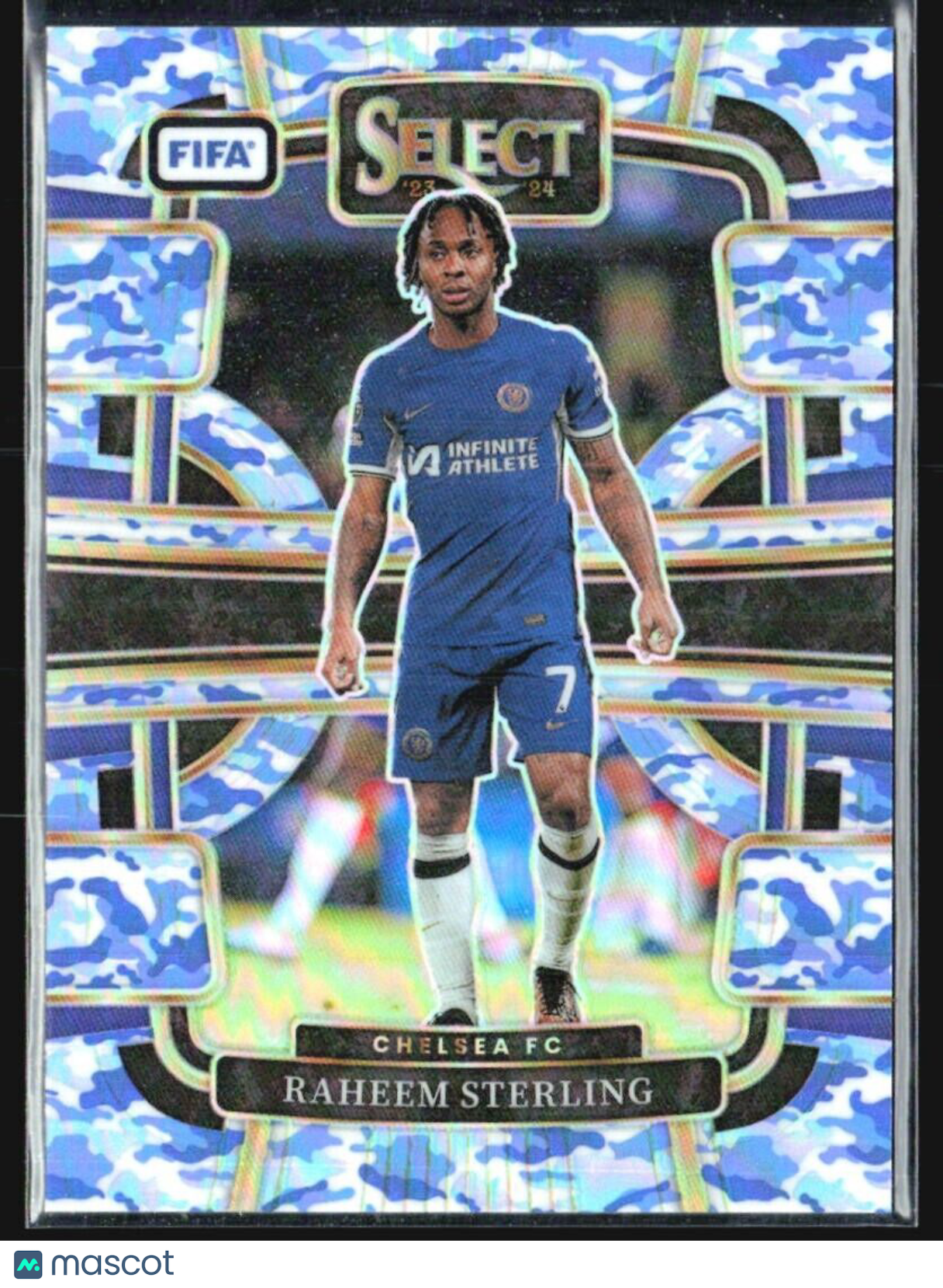 2023-24 Panini Select FIFA - Blue Camo Prizm #7 Raheem Sterling /99