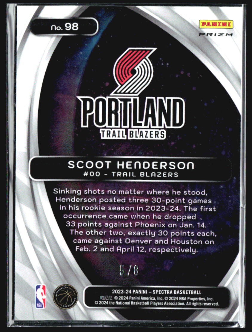 2023-24 Panini Spectra - Titan Scoot Henderson #98 (RC) Marble /8