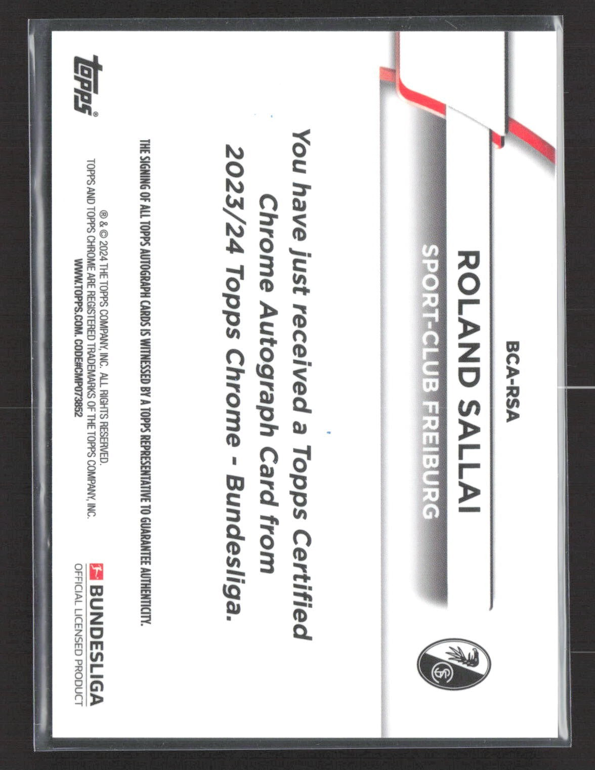 2023-24 Topps Chrome Auto Roland Sallai #BCA-RSA Pink Refractor /75