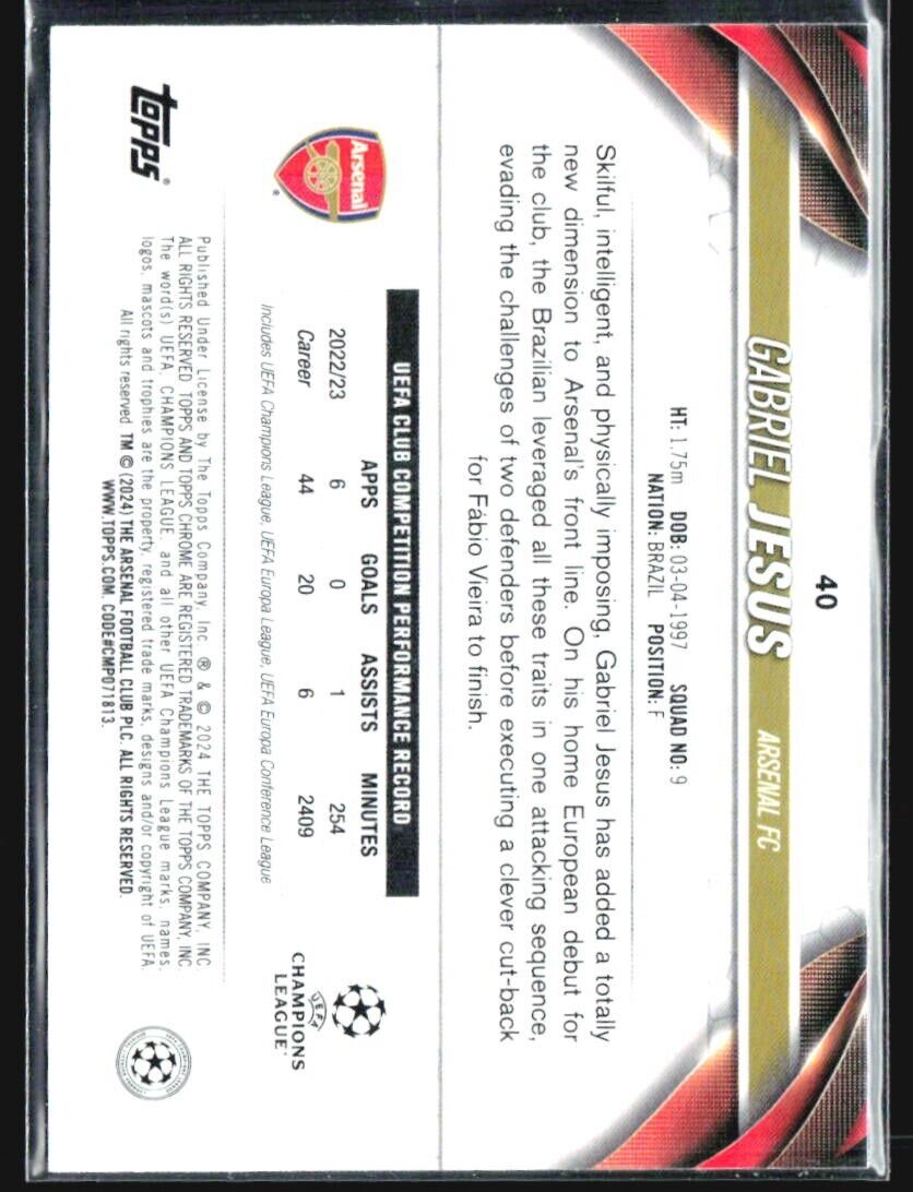 2023-24 Topps Chrome UEFA Club Competitions - #40 Gabriel Jesus Logofractor /52