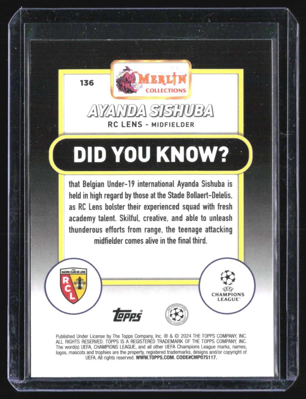 2023-24 Topps Merlin Ayanda Sishuba #136 rc Pink Refractor /275