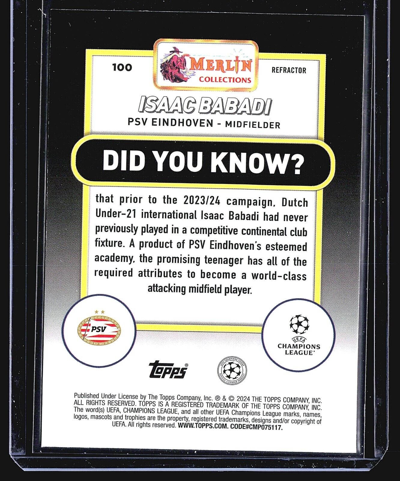 2023-24 Topps Merlin Refractor Isaac Babadi #100