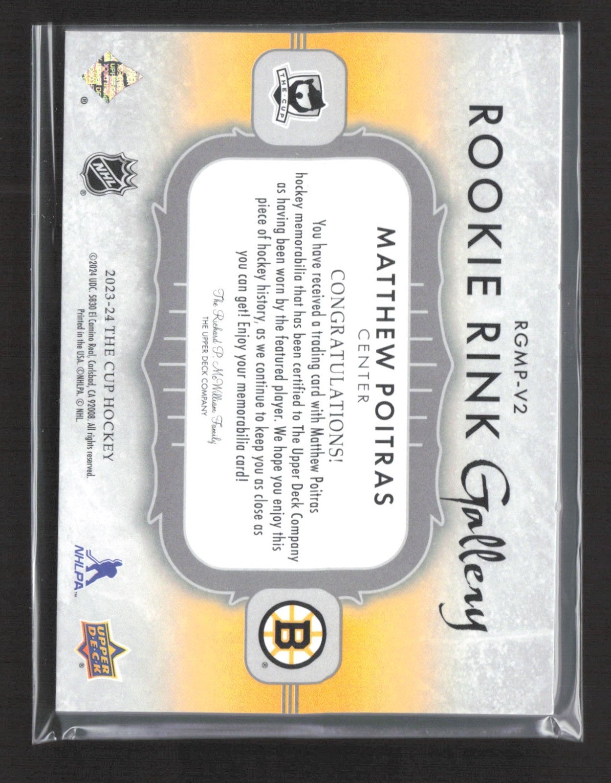 2023-24 Upper Deck the Cup - Rookie Rink Gallery Matthew Poitras Patch /49