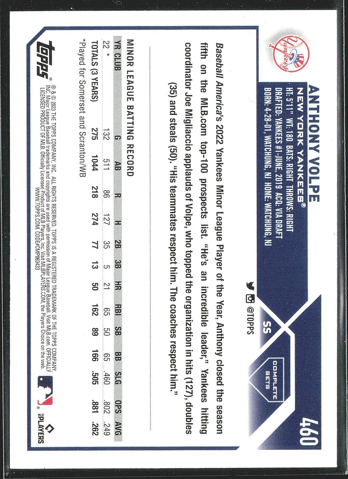2023 Anthony Volpe Topps Complete Sets Rc Rookie #460 Yankees