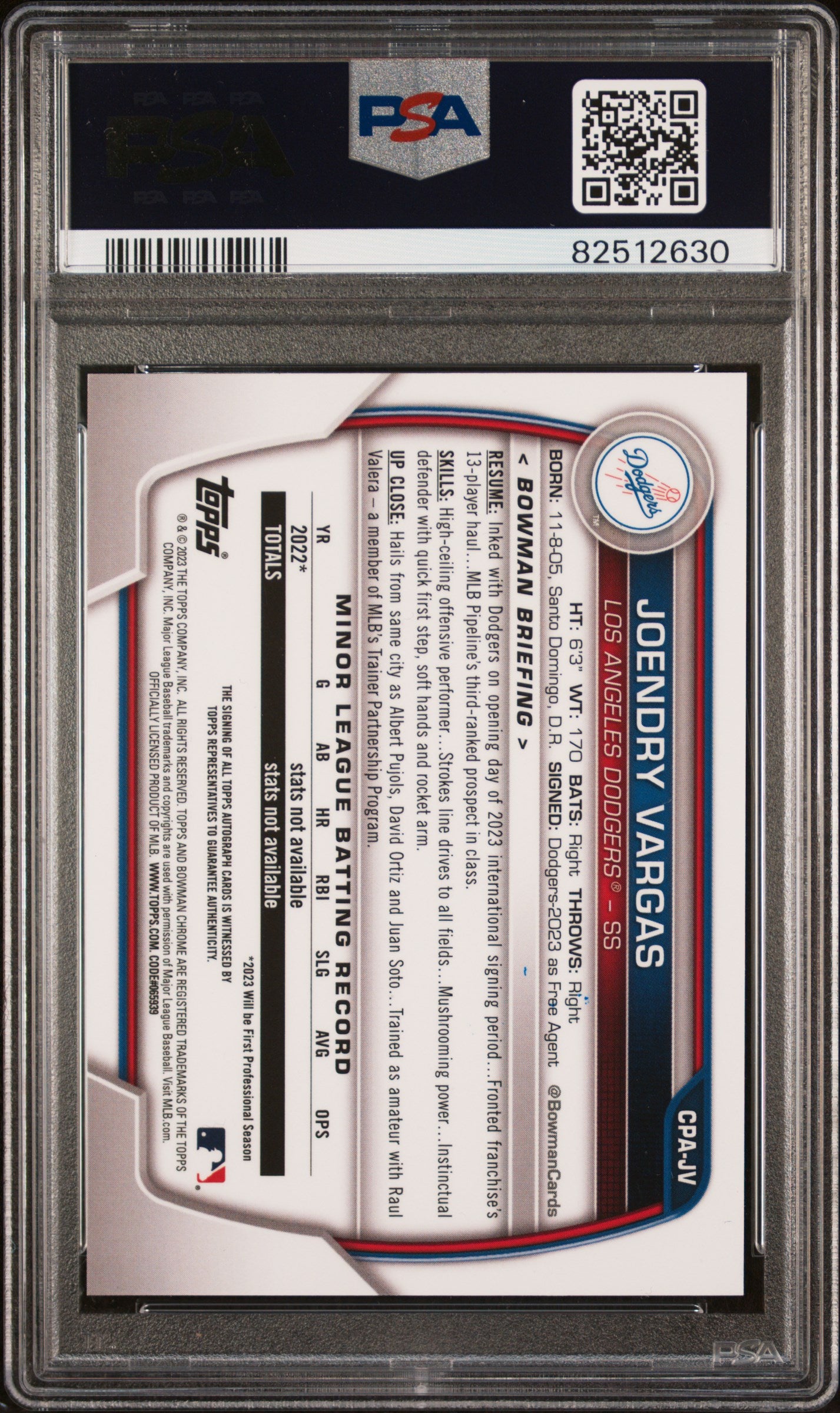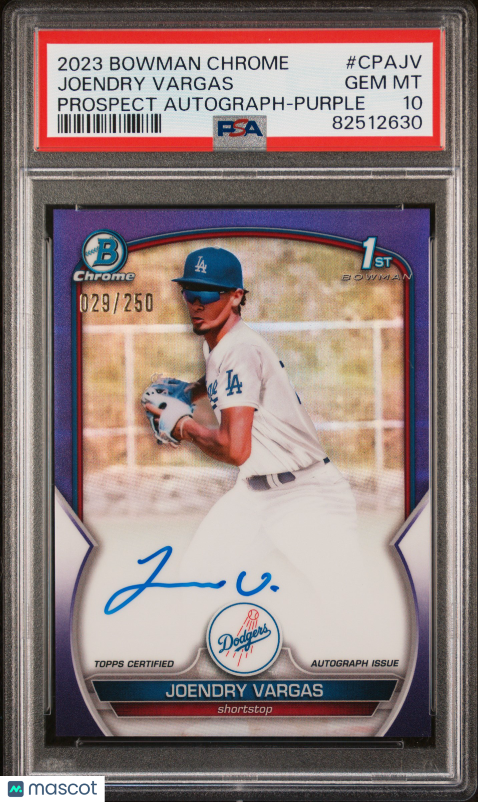 2023 Bowman Chrome Prospect Auto Joendry Vargas #CPAJV Purple Ref /250 PSA 10