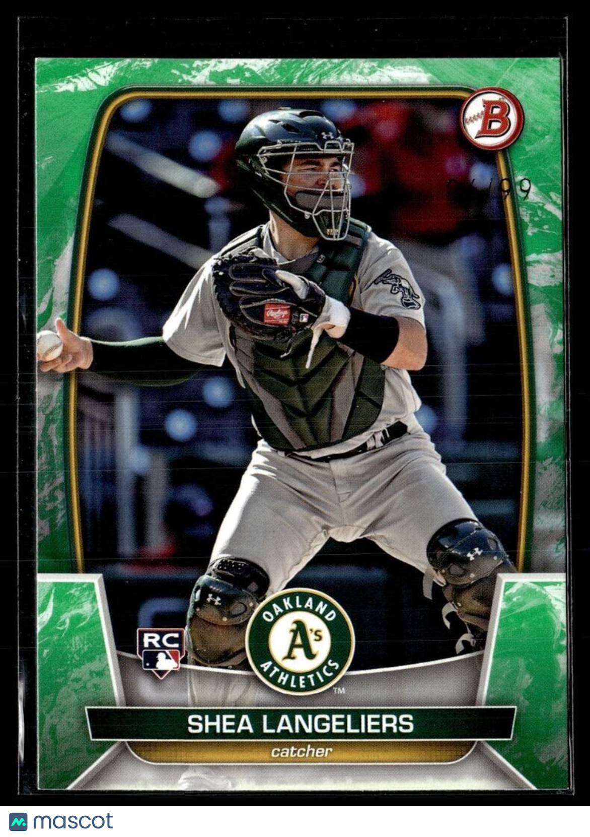 2023 BOWMAN GREEN PATTERN /99 ROOKIE SHEA LANGELIERS A'S